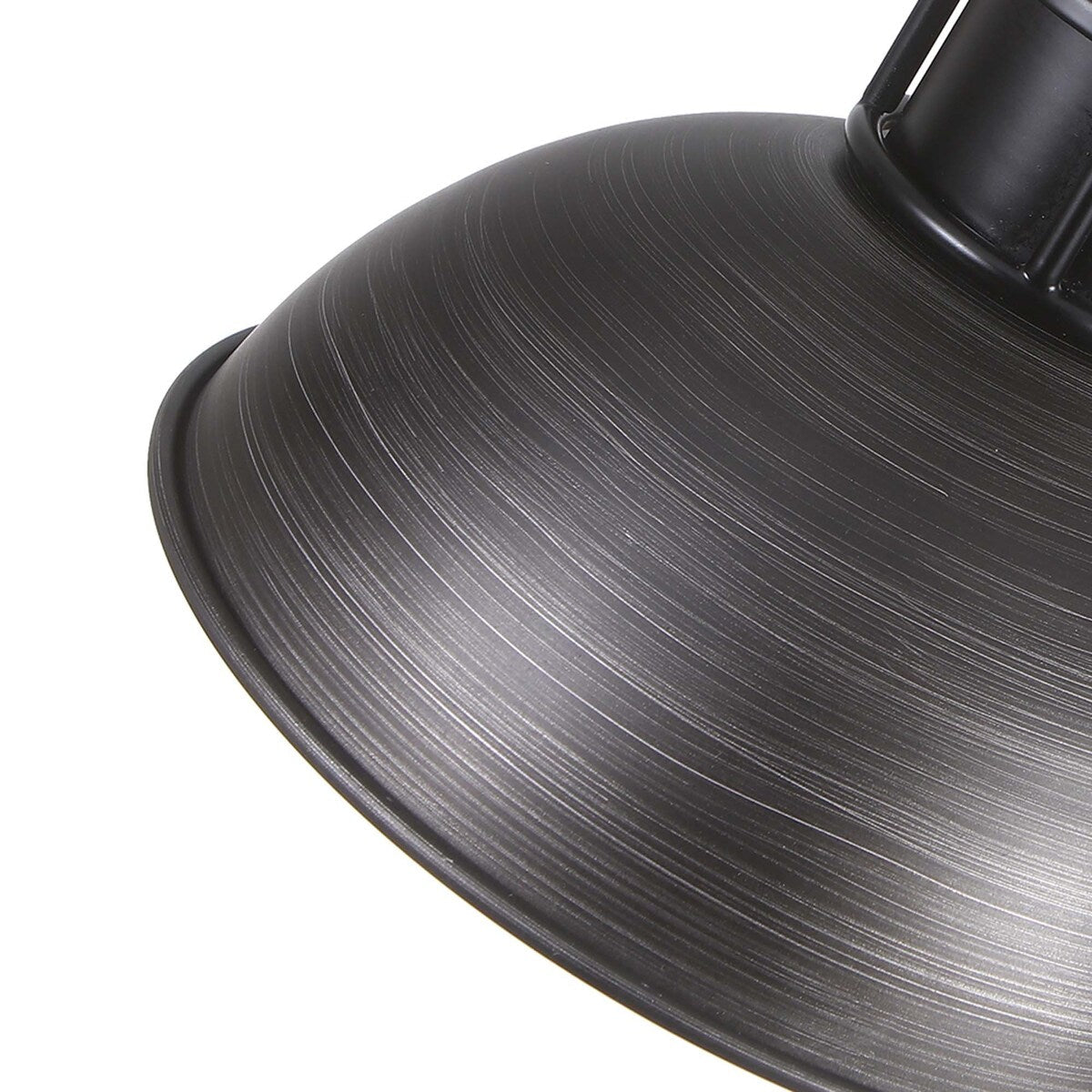 Add industrial style to your modern kitchen or workspace with this industrial sleek dome-shaped pendant light. The minimalist design features chic and sophisticated finishes that combine retro and industrial elements. Choose from black brushed antique silver or oil-rubbed bronze to match your decor. The adjustable length design allows you to customize the length of the down rod up to 60.2 inches. The light supports three E26 sockets that are compatible with various bulbs, and can be fully dimmed when paired with a compatible dimmer switch. Install this light easily on sloped or vaulted ceilings with the included accessories and user manual.