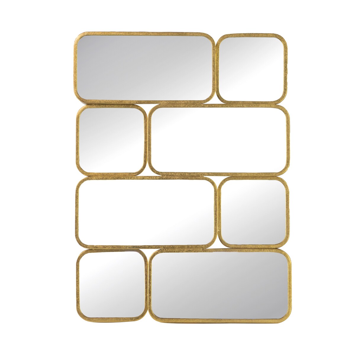 Clean lined and seeming to sing with contemporary charm, this striking wall decoration is comprised of eight mirrors encased in a curved rectangular frame for a look that is unmistakably modern and deeply unique. With easy to use mounting hardware, this piece can adorn your entryway, living room, or dining room effortlessly and stylishly.