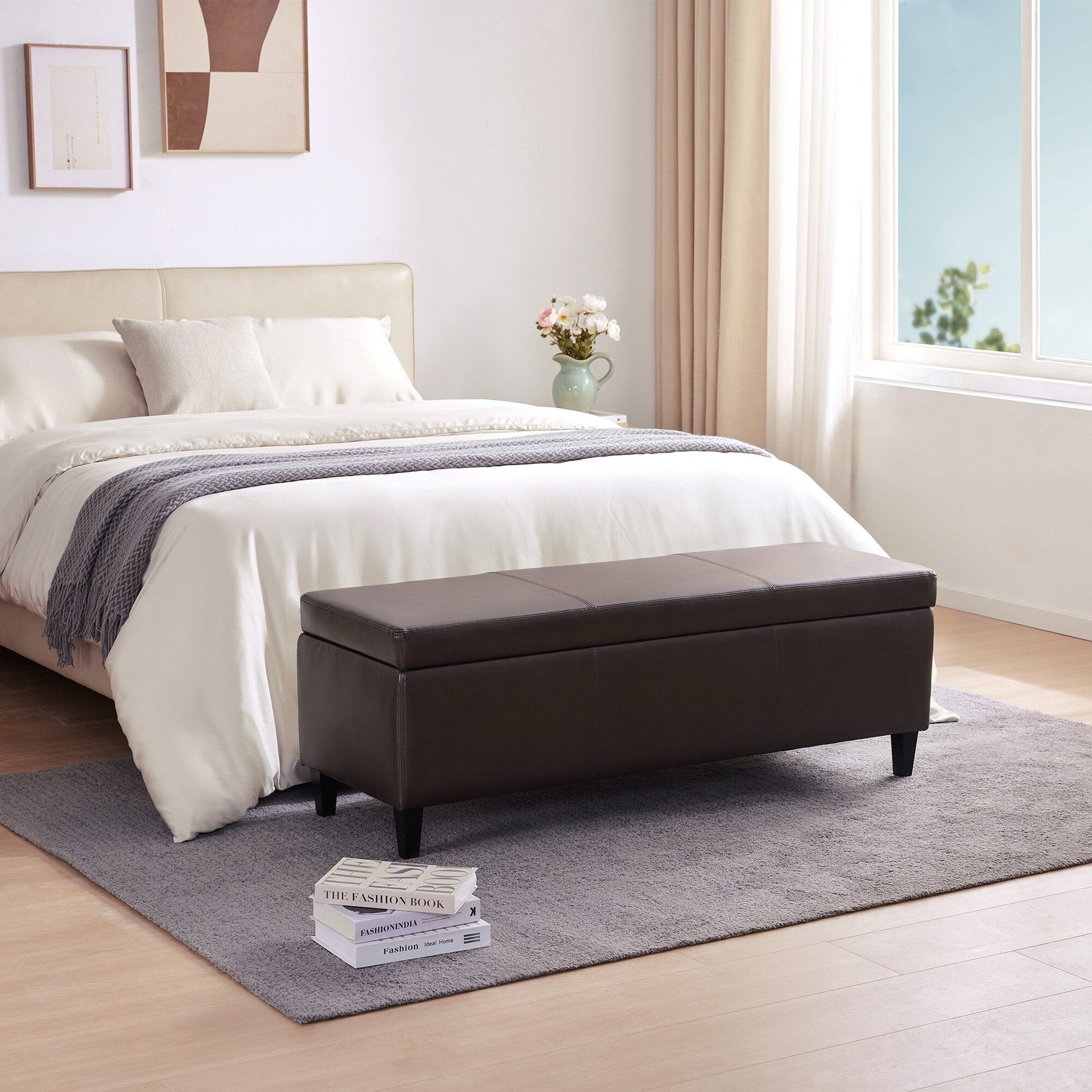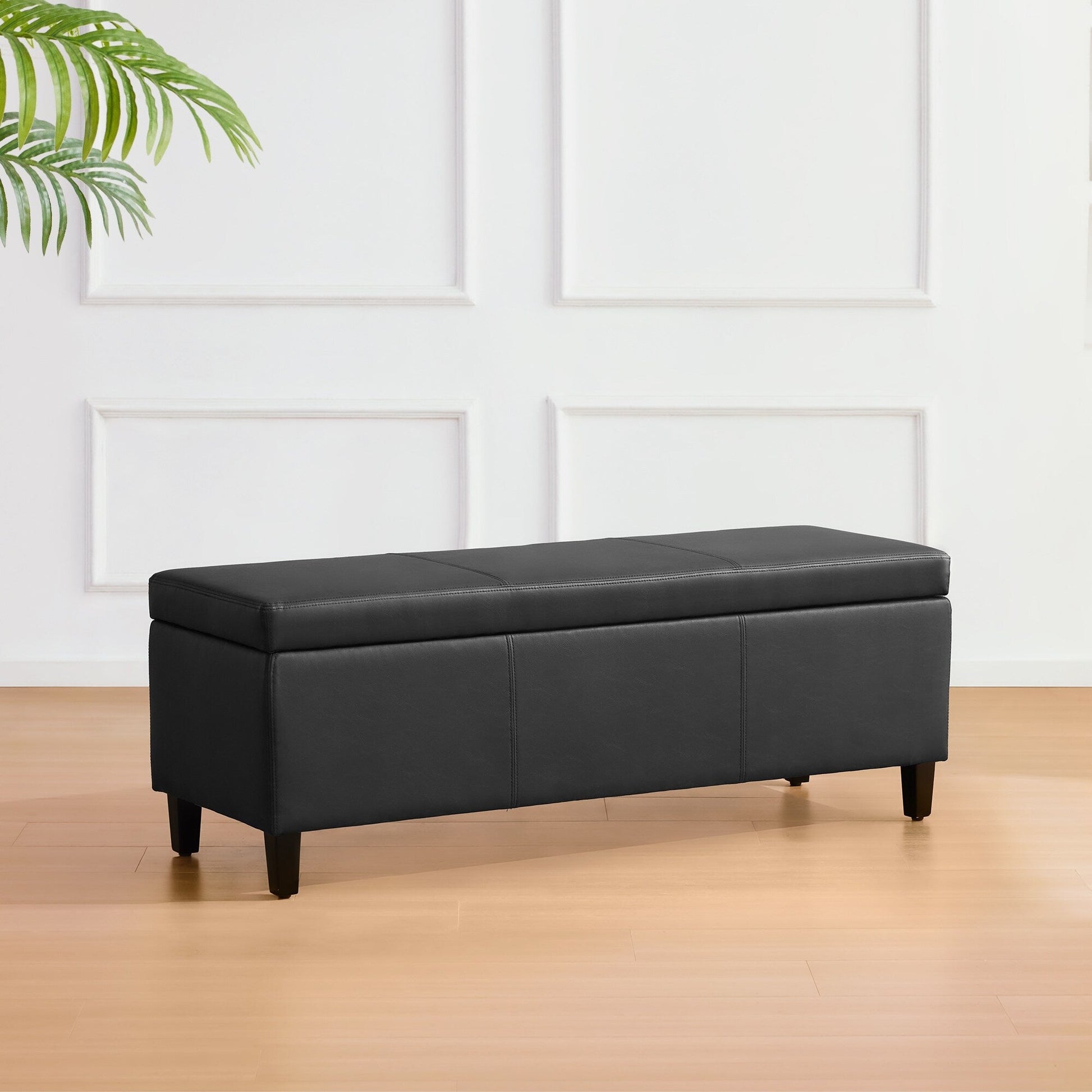 50.3 x 17.50 x 18 Upholstered Rectangular Storage Ottoman-Faux Leather