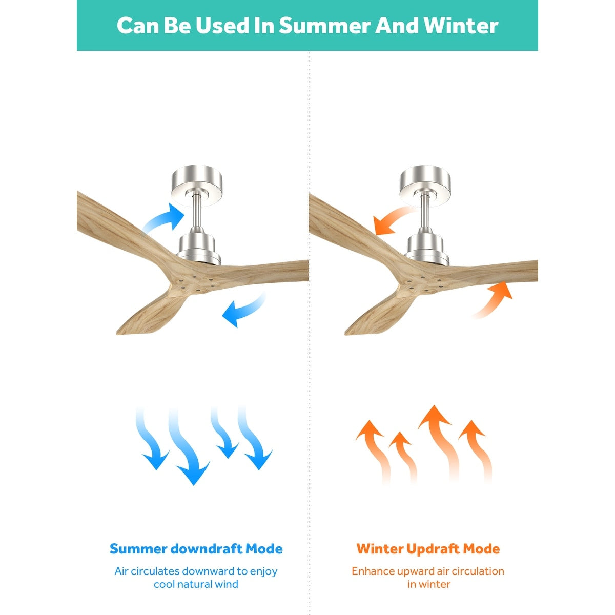 52 inch Modern Solid Wood / ABS Ceiling Fan With Remote Control(No Light),6 WInd Speed,Reversible Airflow