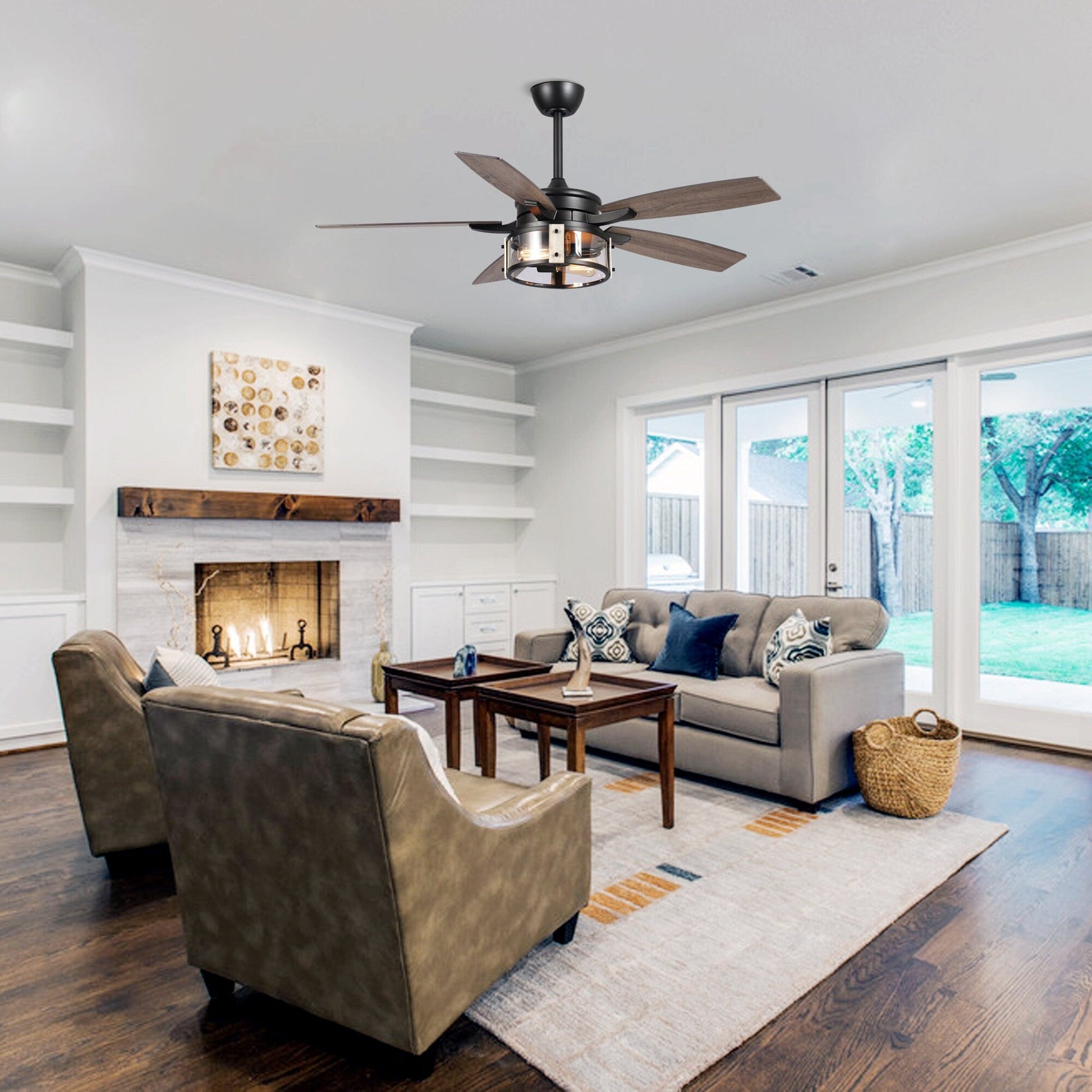 52 Rustic Black Wood 5-Blade Indoor Ceiling Fan with Remote