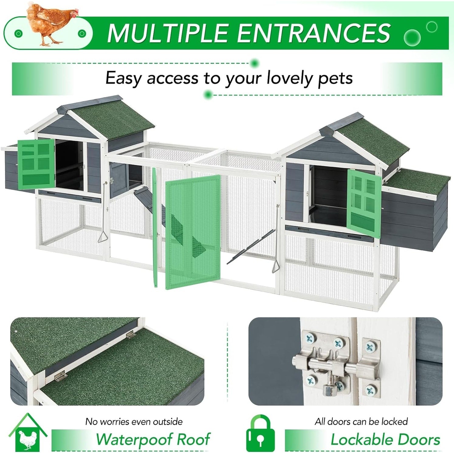AECOJOY 144'' Large Chicken Coop w/ Run Wooden Hutch Poultry Cage House