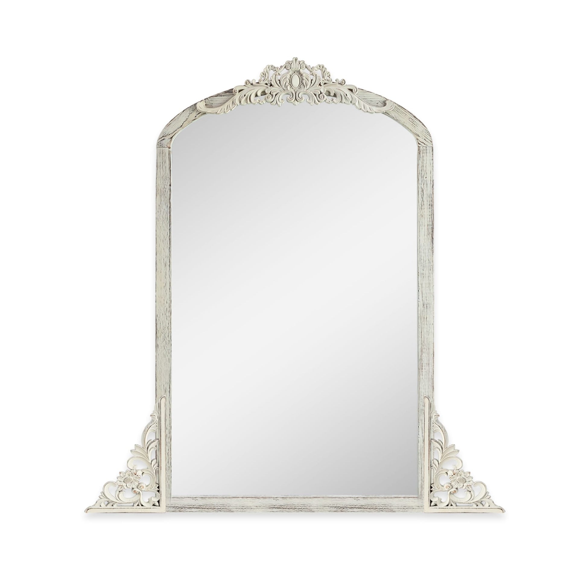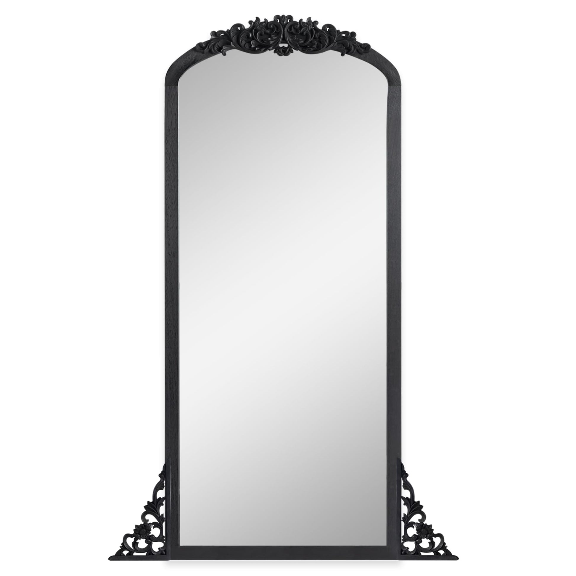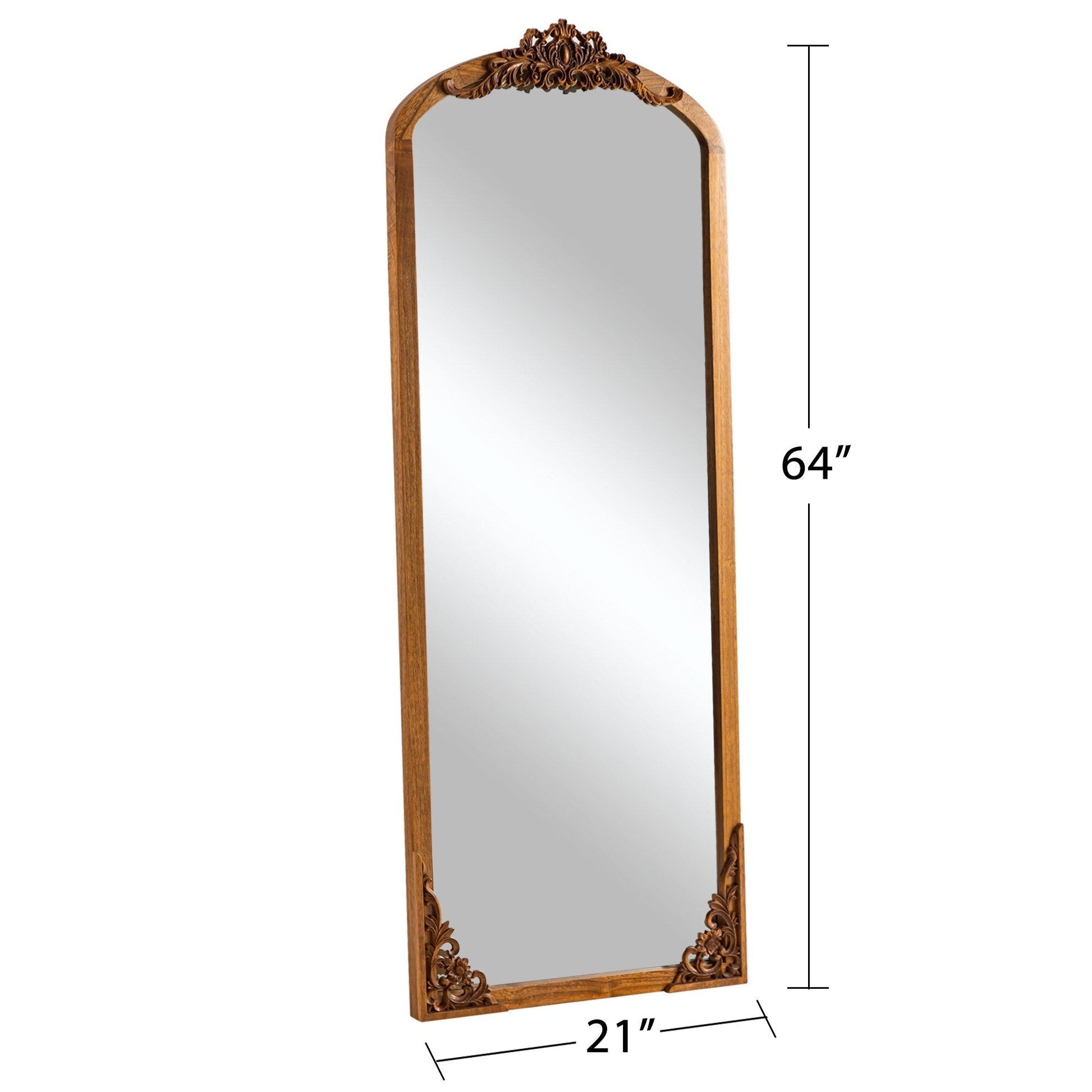 Arched Full-Length Solid Wood Carving Floor Mirror