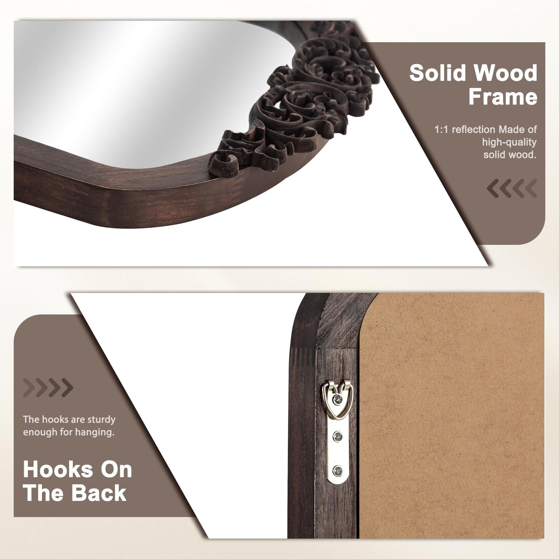 Robust Solid Wood Frame for Enduring Quality: Crafted from durable solid wood, the mirror's frame ensures long-lasting quality, adding a touch of timeless beauty to your room.
