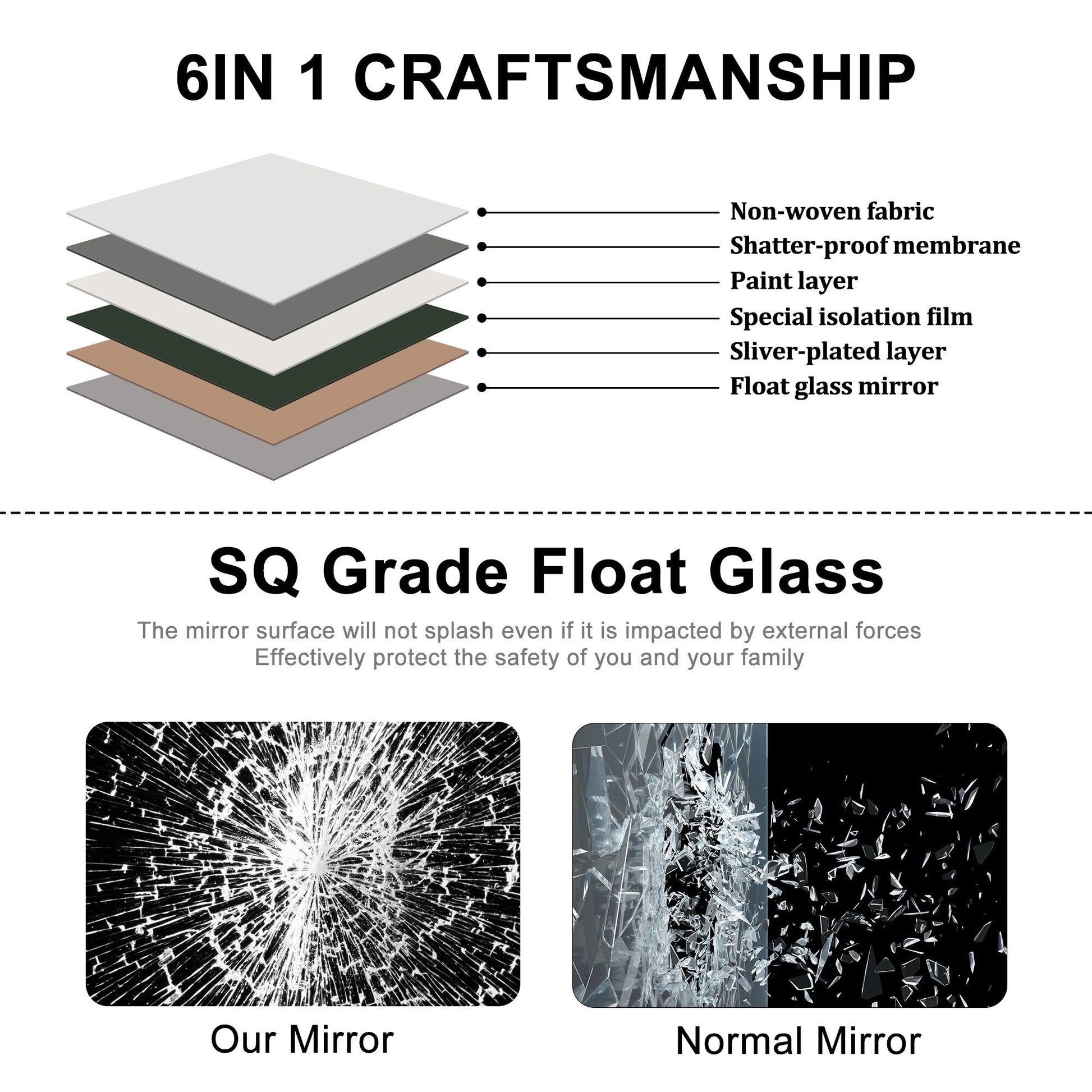 The full length mirror is made of 5mm HD glass, SQ grade float glass which can provide super HD imaging and undistorted reflection.