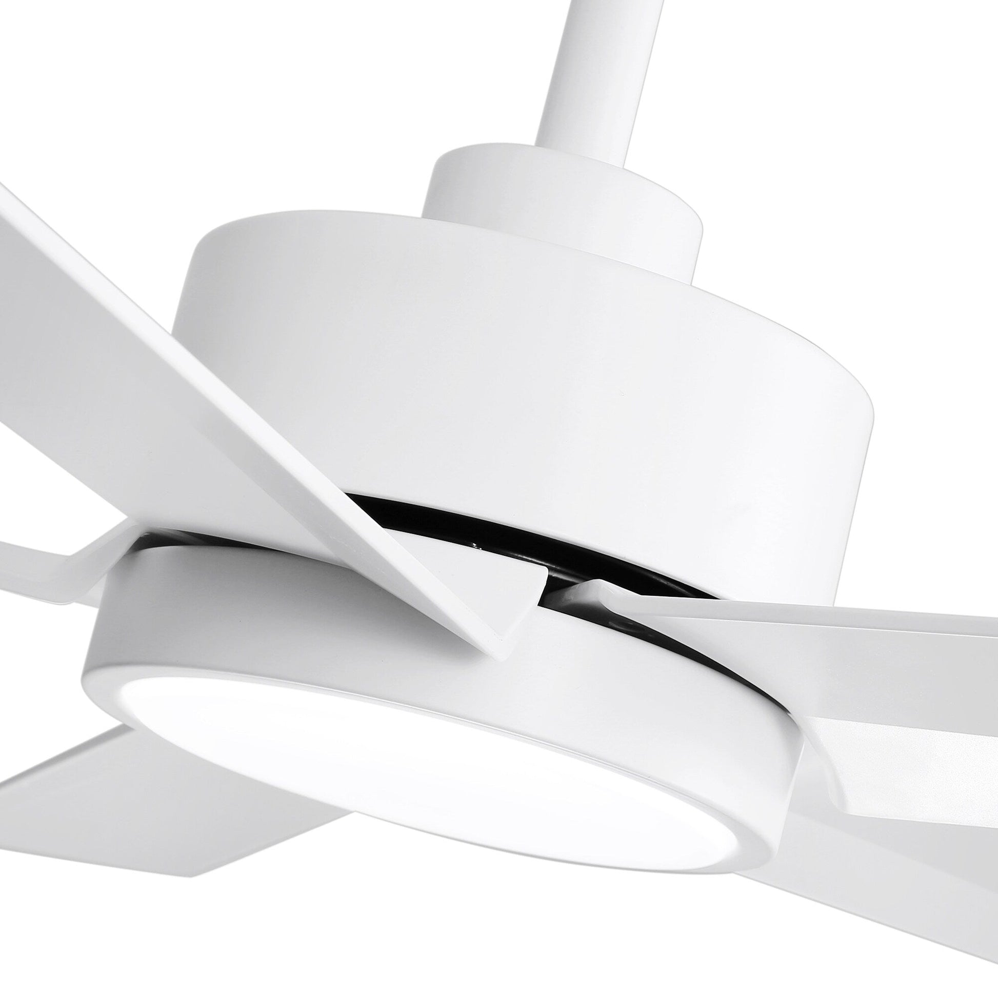 Lend a modern touch to your decor with the LED 42/52/65in fan. The propeller-inspired 5-blade design ensures optimum air circulation while creating an enhanced visual appeal. It features a acrylic lampshade that creates a pleasing ambiance with its unique design and black/white/gold finish, this ceiling fan complements various styles of decor.