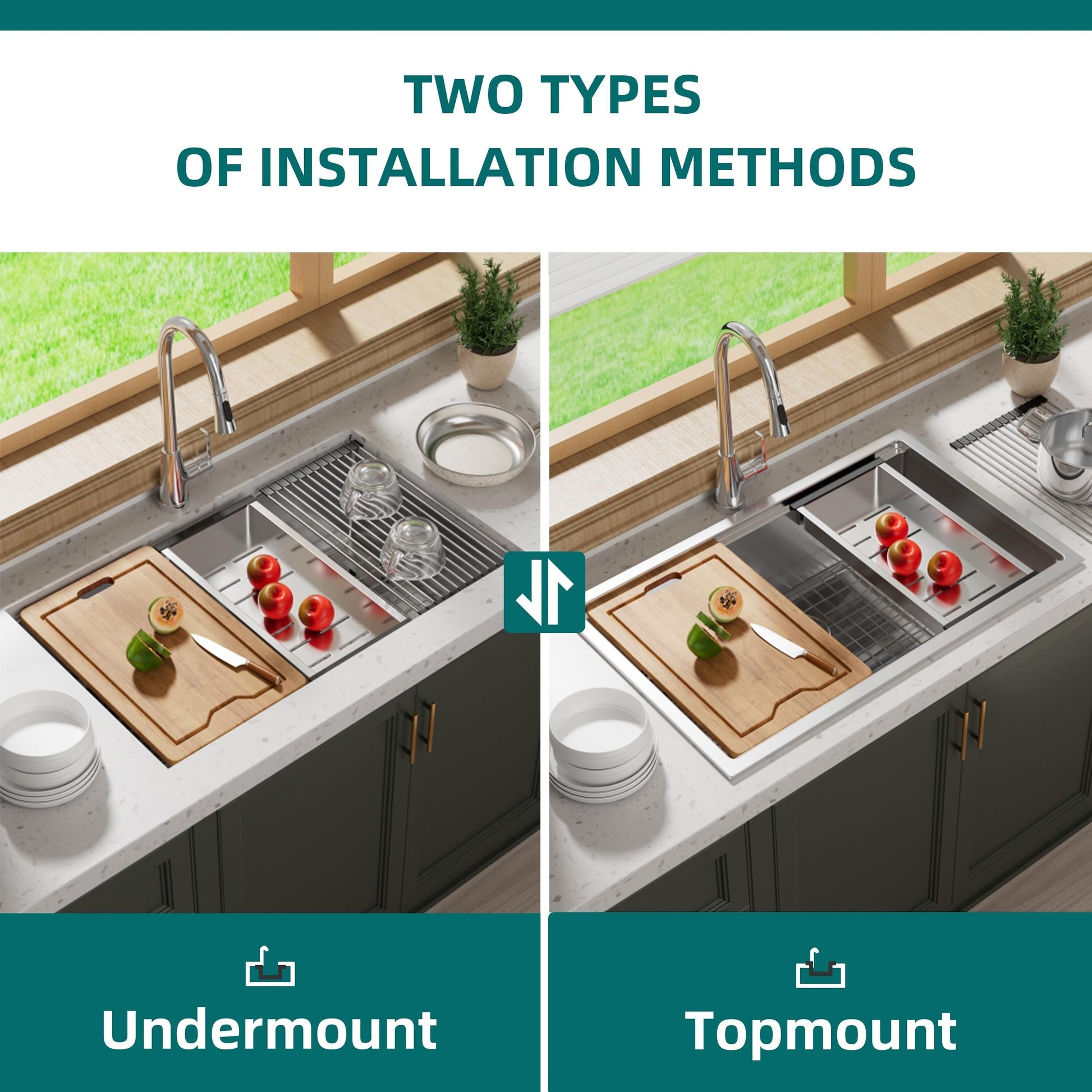 ✅【Large Capacity & Deep Single Bowl Sink】:Large capacity of 32 inches and depth of 10 inches, can easy wash and place pots , pans and dishes in the roomier sink so that saving kitchen counter space and keep cleaning.