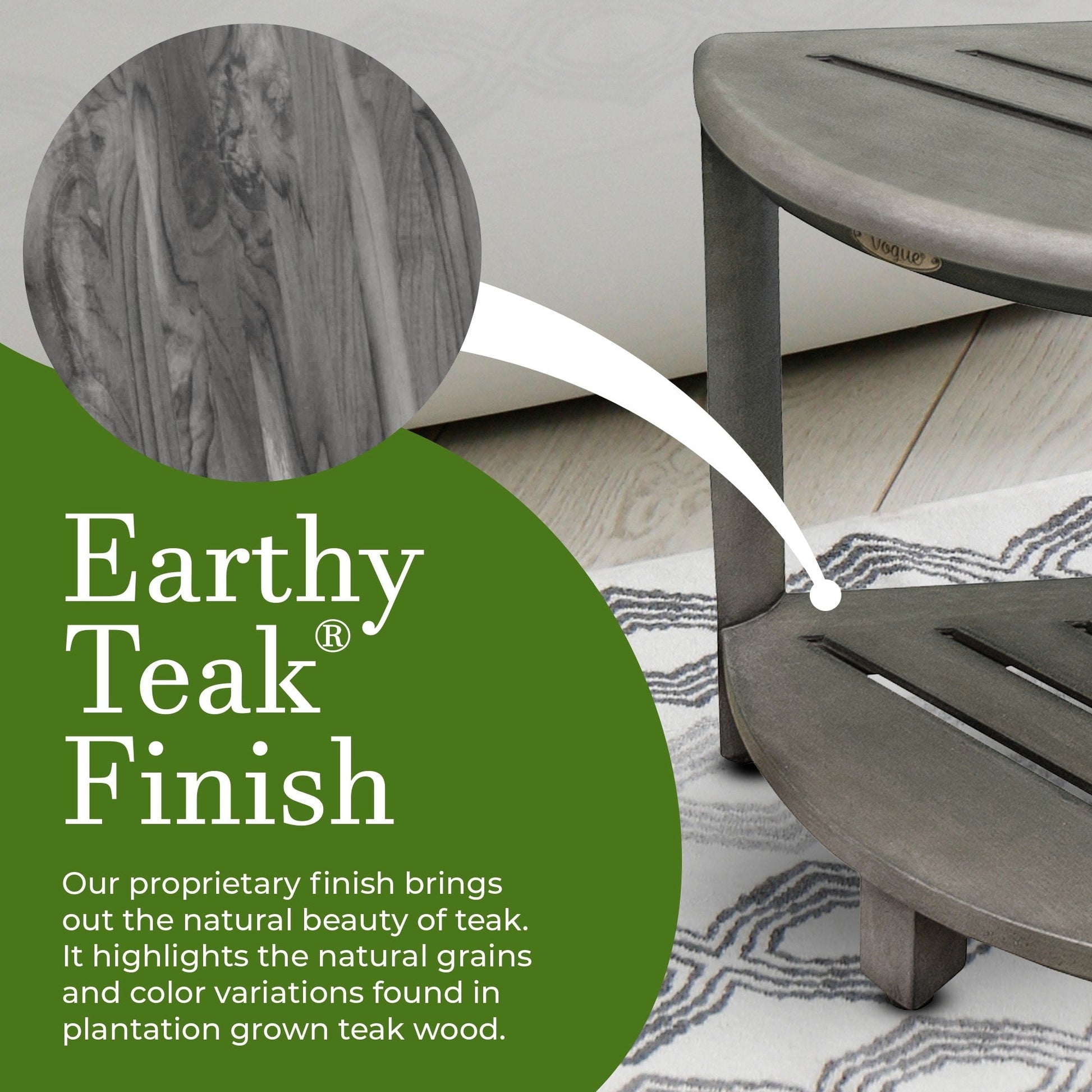 CoastalVogue celebrates the natural beauty of sustainably sourced teak wood. Using proprietary finishing techniques (Antique Gray), we enhance the wood's natural variations in color and grain, creating a look that's as unique as it is durable. Handcrafted in small rural workshops in Indonesia, our teak shower benches are more than functional—they're a stylish addition to any space, indoors or outdoors. Designed to last, our water-resistant, 2-tier teak shower shelf brings both elegance and practicality to your bathroom, while staying true to the CoastalVogue brand promise of quality and sustainability. With proper maintenance, the bench will retain its beautiful appearance and functionality for years to come. Although primarily designed for the shower, they can grace and accentuate any room in the house for sitting, storage, and display.