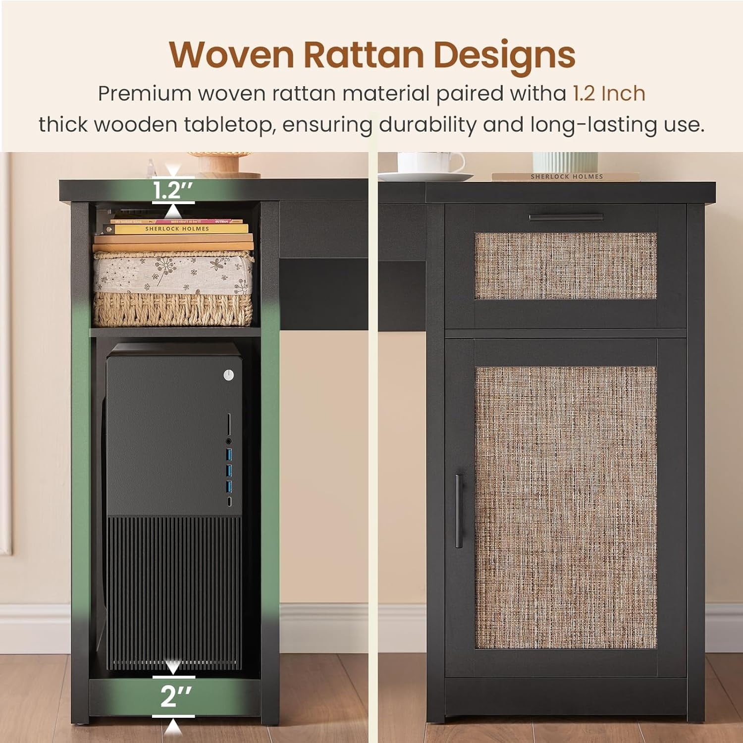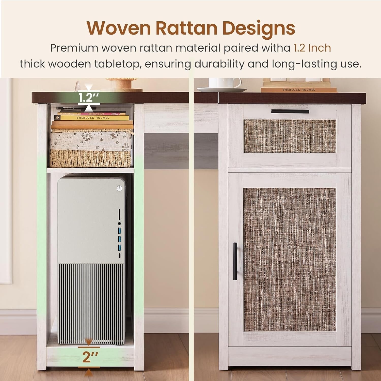 - 【Solid Construction & high quality material】Crafted from high-quality wood, the sturdy construction and thickened table top provide durability and stability. Drawers and cabinet storage provide convenient organization for a clutter-free workspace.