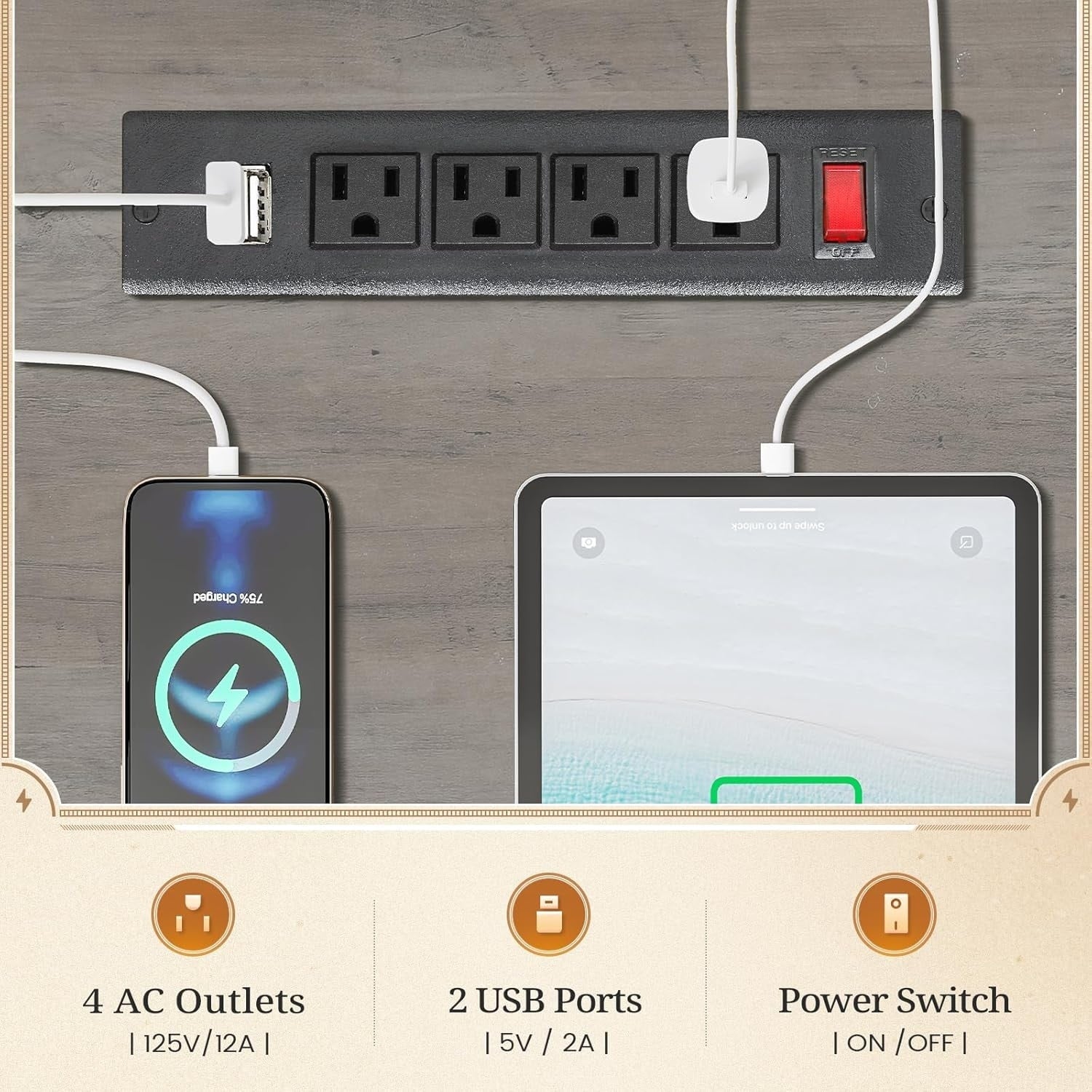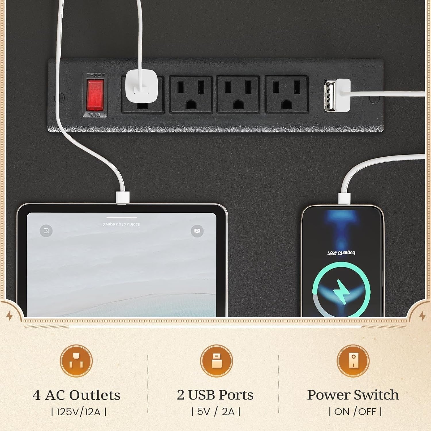 - 【Power Outlets】This computer desk is equipped with 4 AC outlets, 2 USB charging ports to provides convenience for charging your gaming gear, tablet, printer or phone. The switch is convenient and safe to turn off power, no need to unplug appliances at all times.