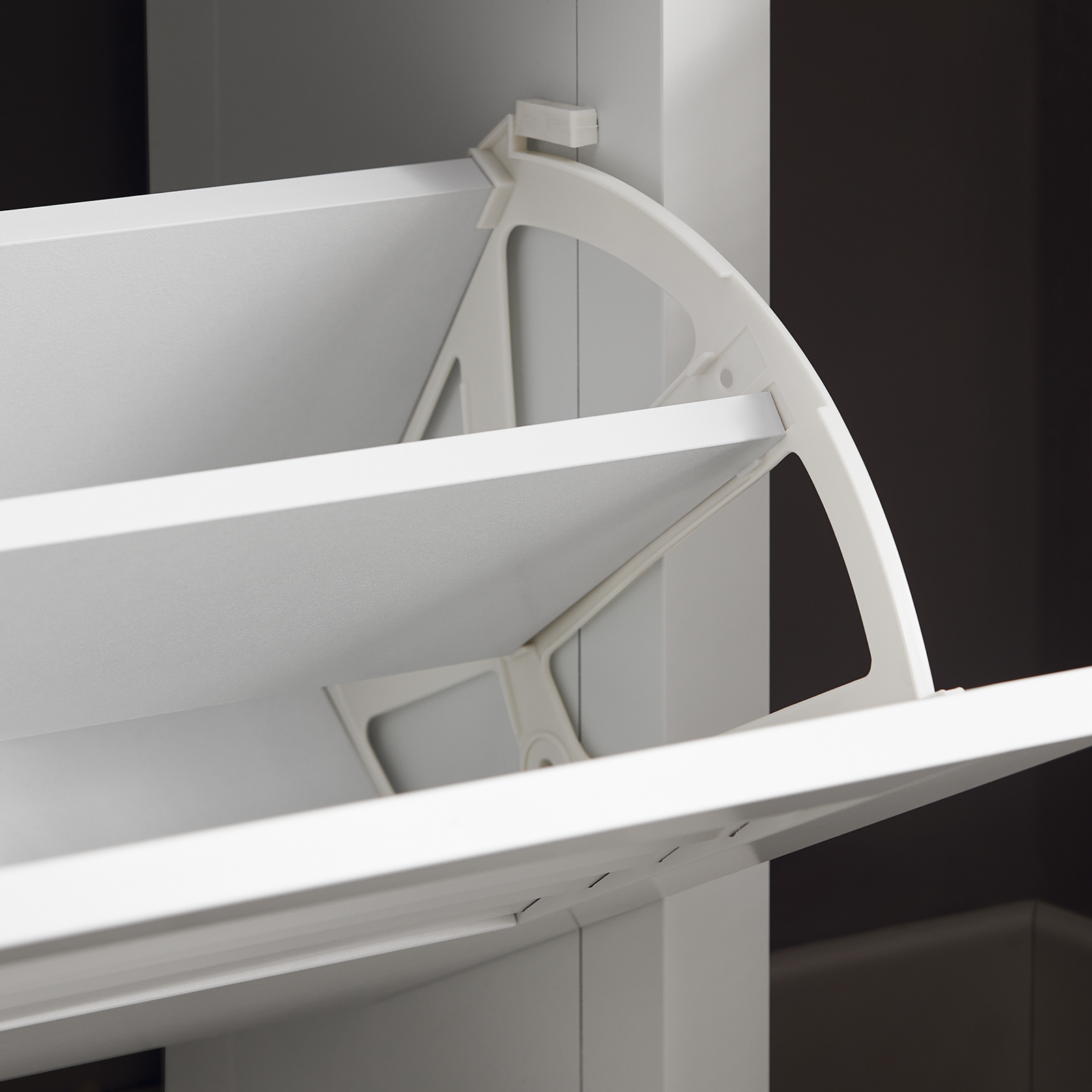 Il comprend un compartiment de rangement pour chaussures composé de 2 tiroirs à charnières. Chaque tiroir dispose de 2 rangées d'emplacements.
