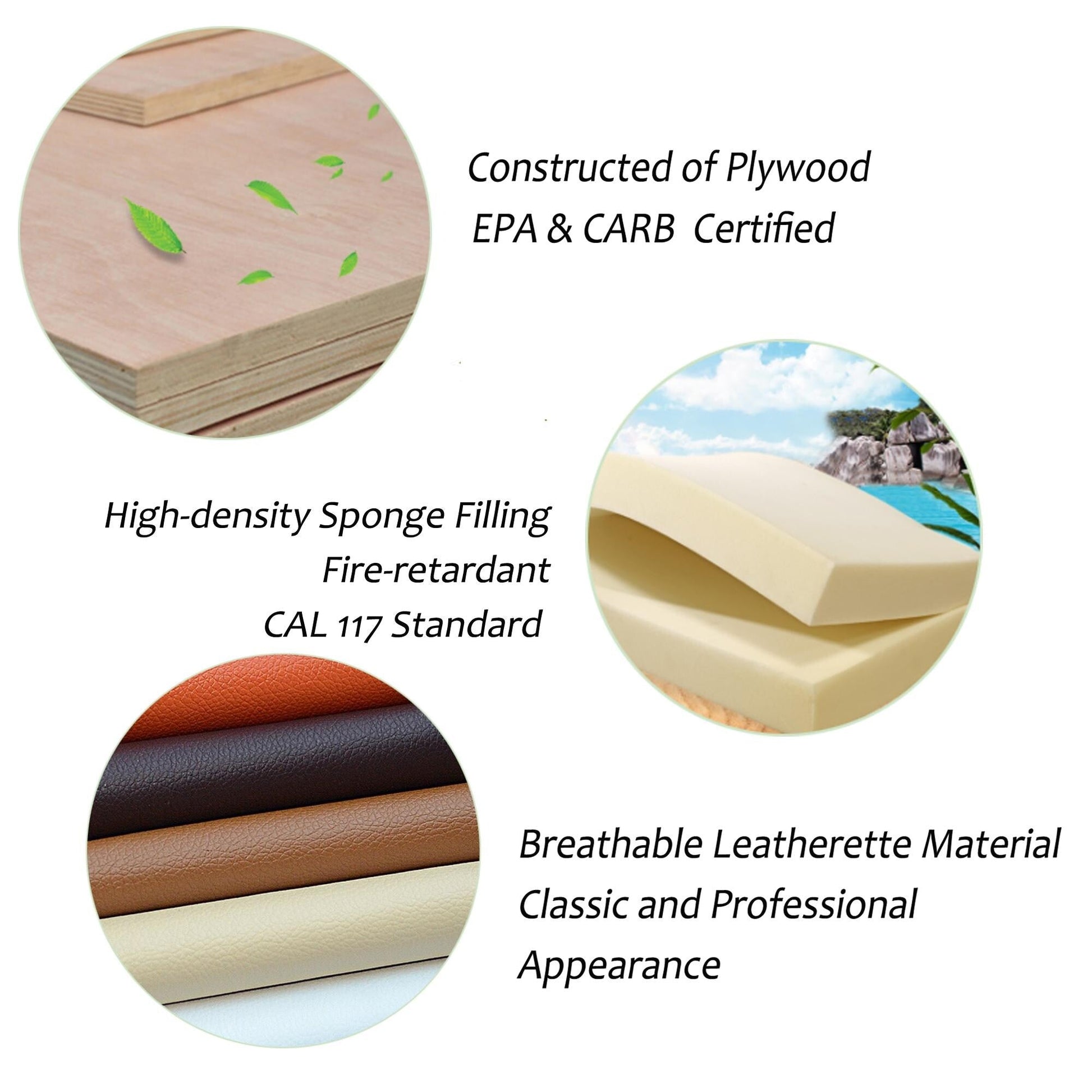 - Material: PU Leather, Polyurethane Foam, Plywood, Steel