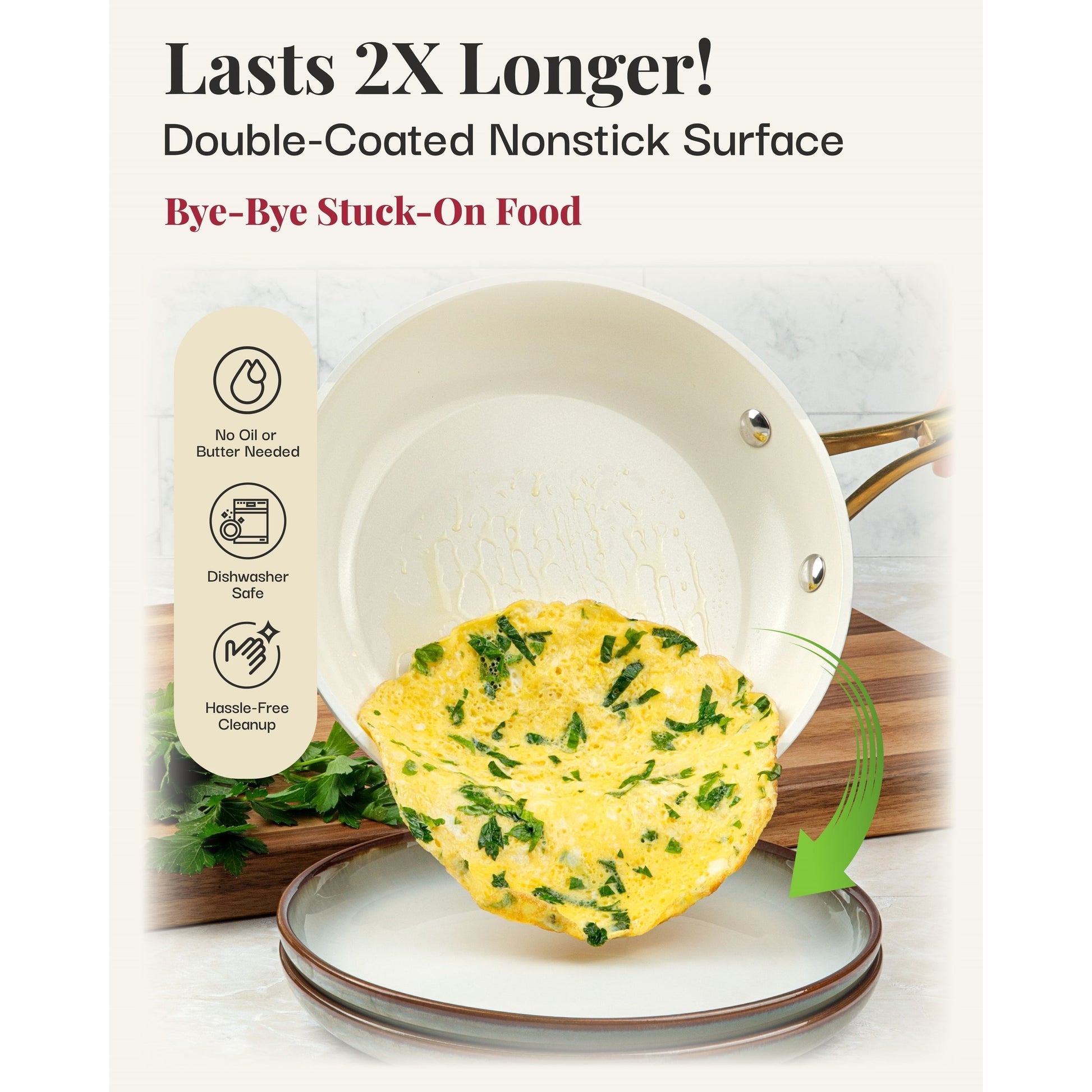- Ultra-Durable Nonstick Ceramic Coating: Features an advanced ceramic coating that ensures food easily slides off the surface, promoting healthier cooking with minimal oil or butter needed.