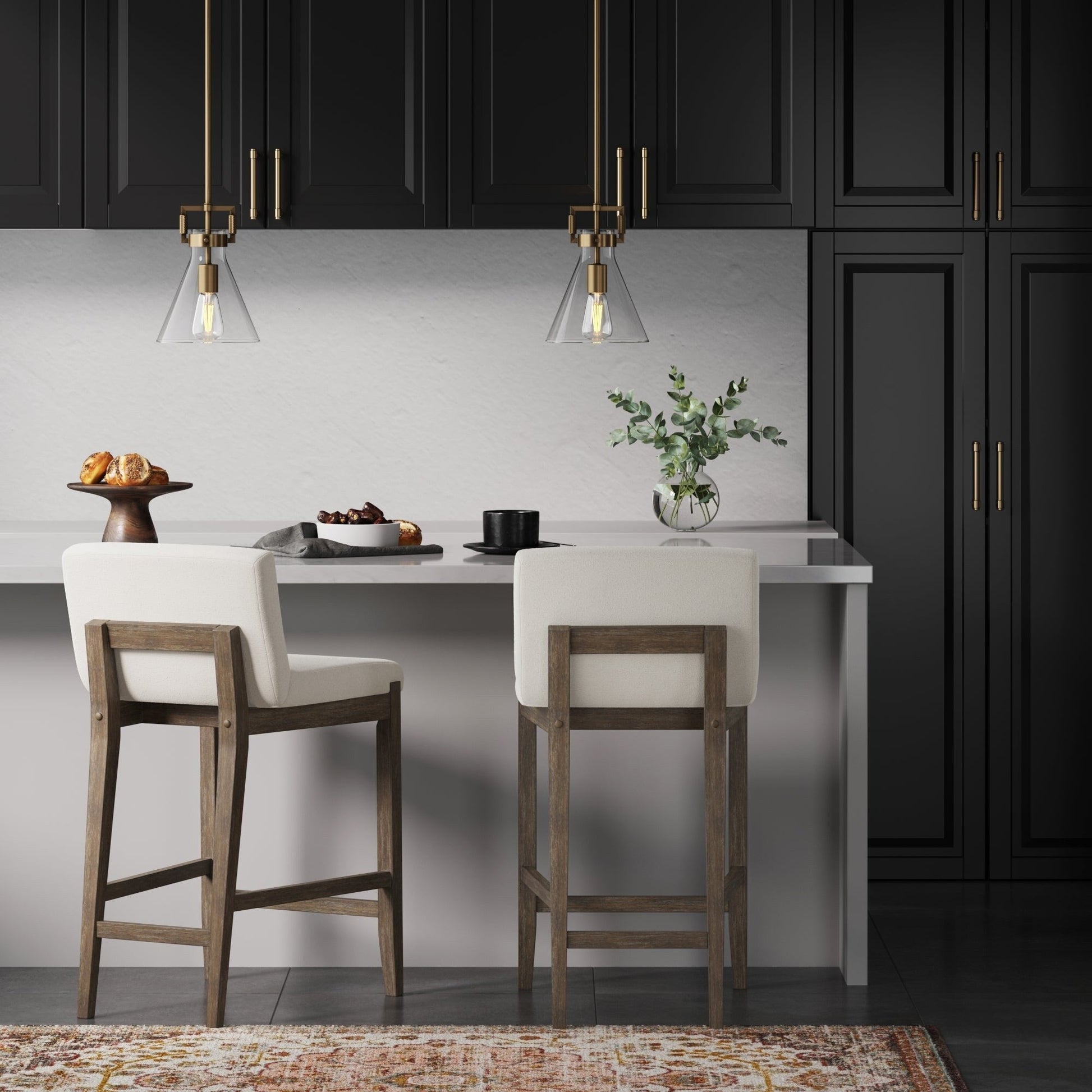Gracie Modern Bar Stool, Boucle Upholstered Chair and Brushed Wooden Legs