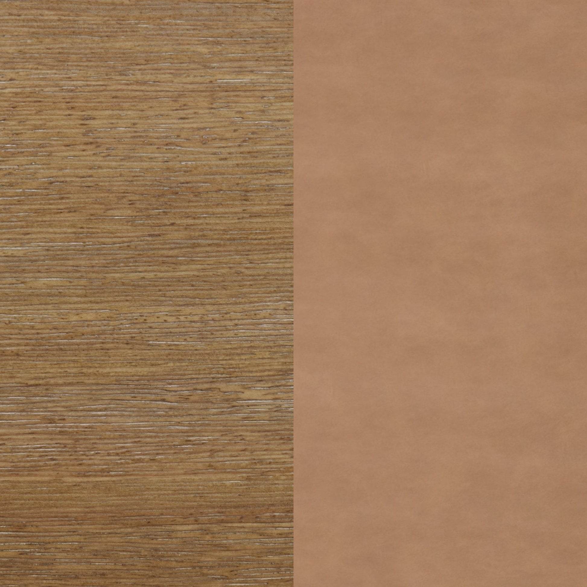 - The wide, supportive backrest highlights an exposed wooden back that adds to its farmhouse feel.