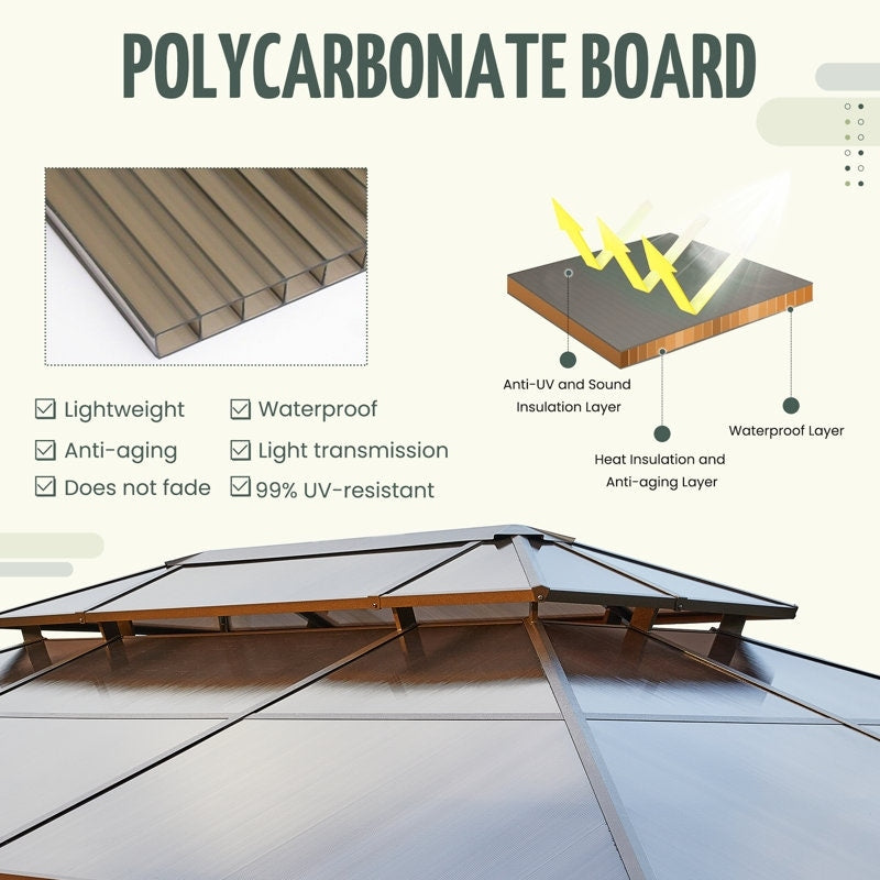 This gazebo features a refined double-roof design with enhanced ventilation spacing, promoting better airflow for a cooler, more comfortable environment.The integrated concealed side vents work in harmony with the roof design to actively draw in cool air while facilitating warm air exhaust, creating natural convection even during peak summer temperatures. This intelligent airflow management system delivers complete sun protection while maintaining refreshing air circulation - offering the ideal combination of shade and breeze that rivals the comfort of natural tree canopy.