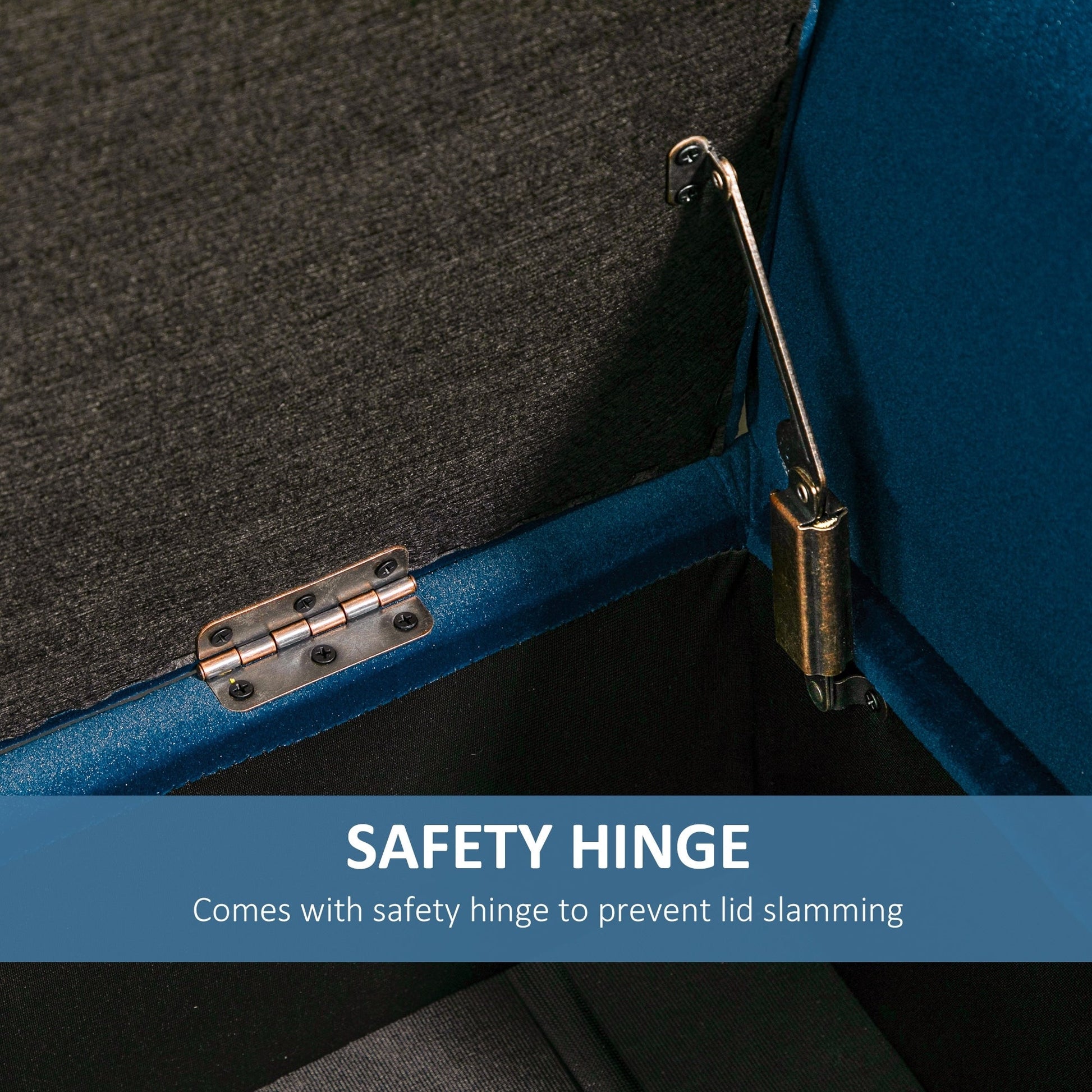 Add a touch of glamour and functionality to your home with this button-tufted storage ottoman bench from HOMCOM. The velvet-touch polyester fabric and rolled armrests make for a stylish and comfortable addition to any room, while the flip-top seat provides ample storage space for books, toys, or blankets. The sturdy rubberwood legs ensure stability and durability. Assembly is required for this elegant piece that is perfect for your entryway, living room, or window side.