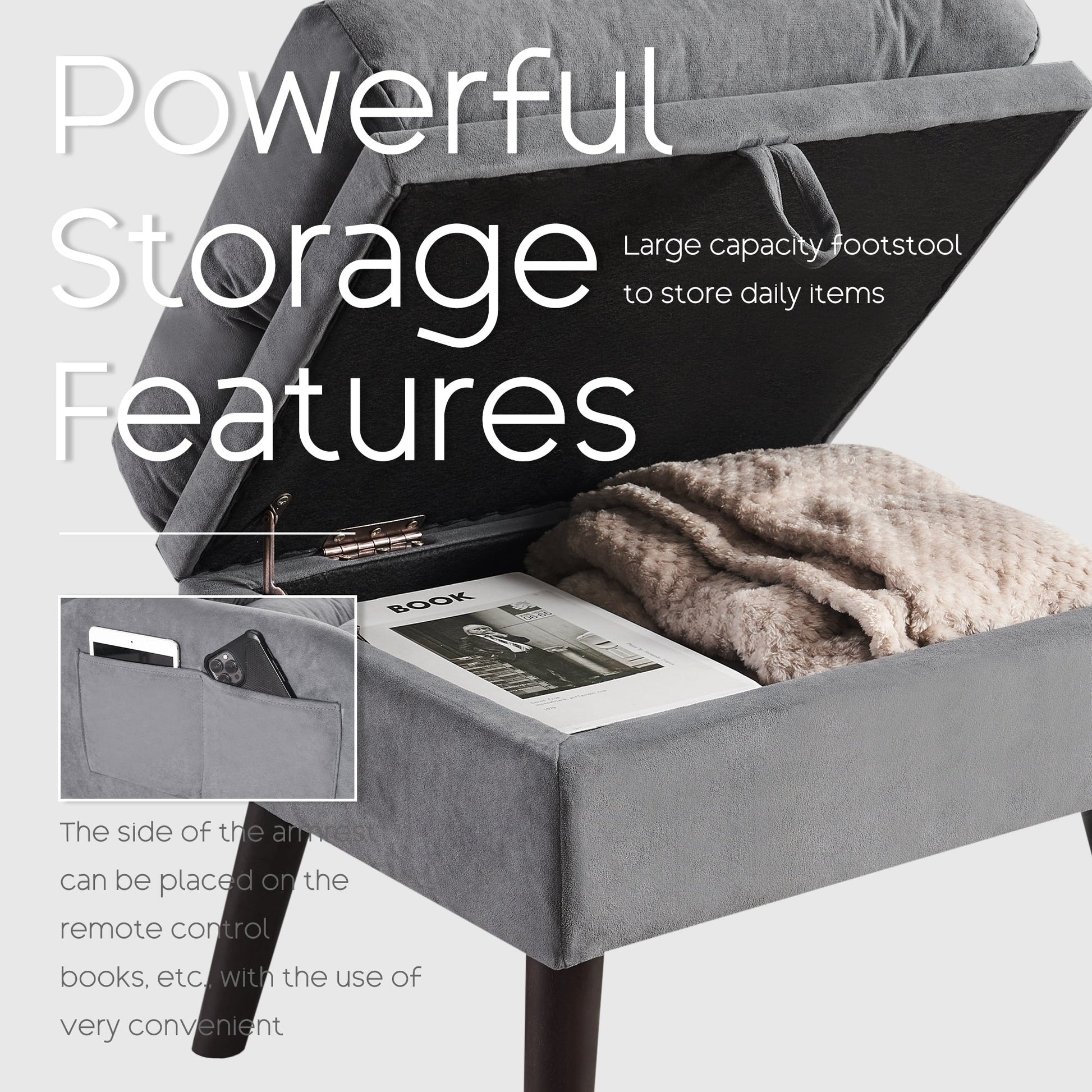 HOMYKA Accent Lounge Chair with Adjustable Backrest Storage Ottoman