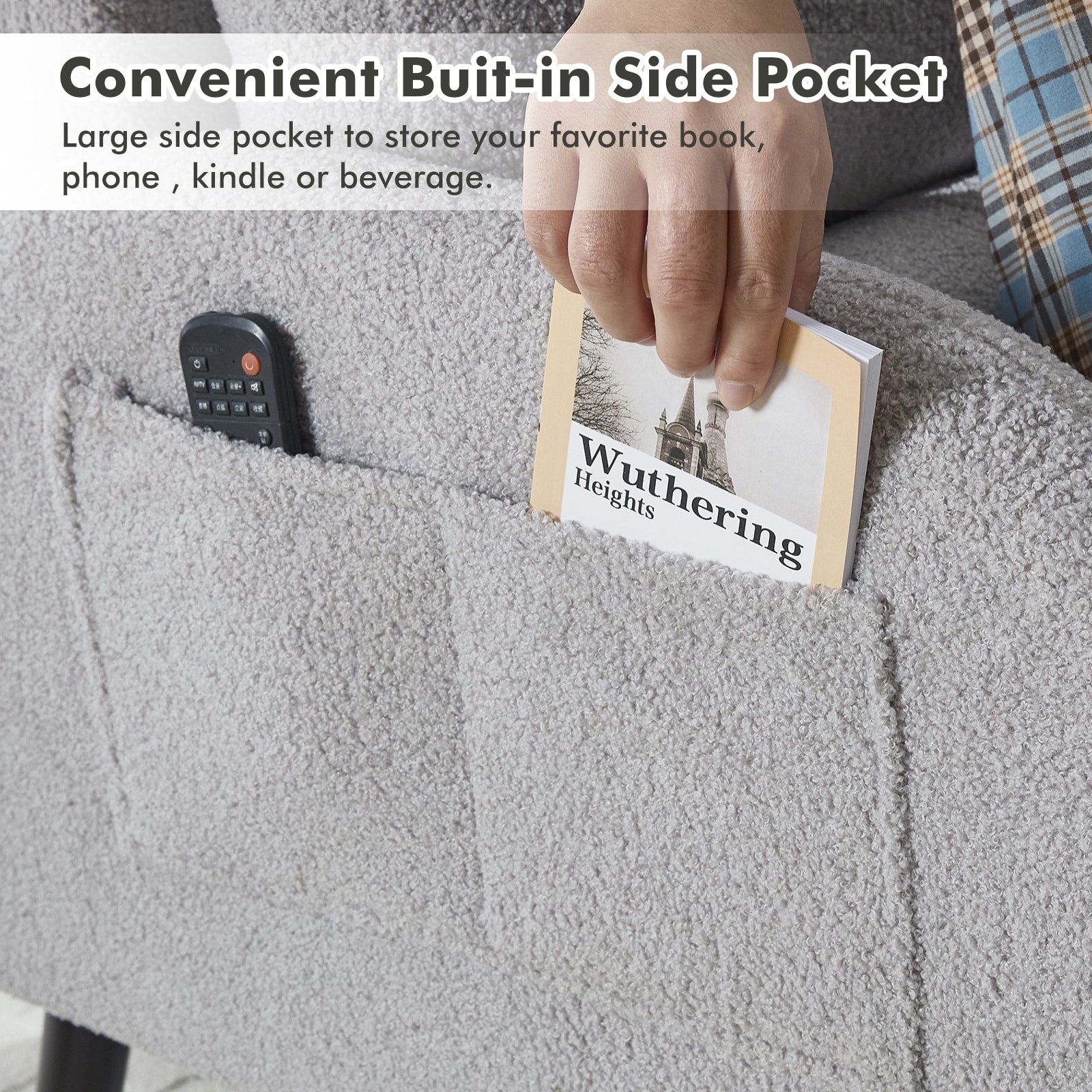 - Versatile Storage Solution: The accent chair with ottoman offers a convenient storage solution with a large pocket on the side of the chair. This additional feature allows you to keep essential items within easy reach, enhancing the functionality of your living space while maintaining tidiness.