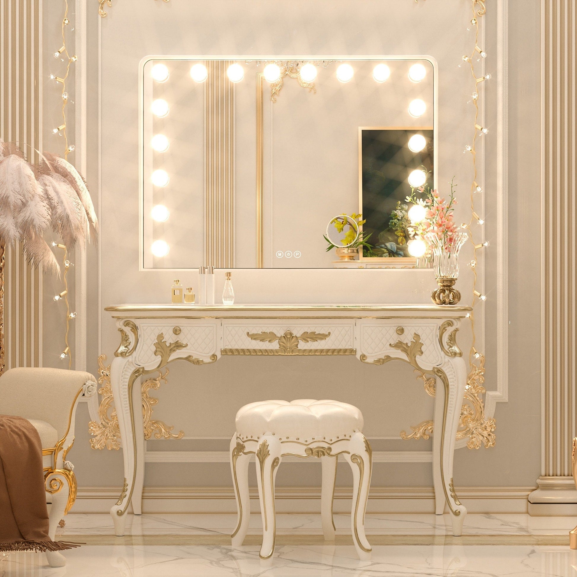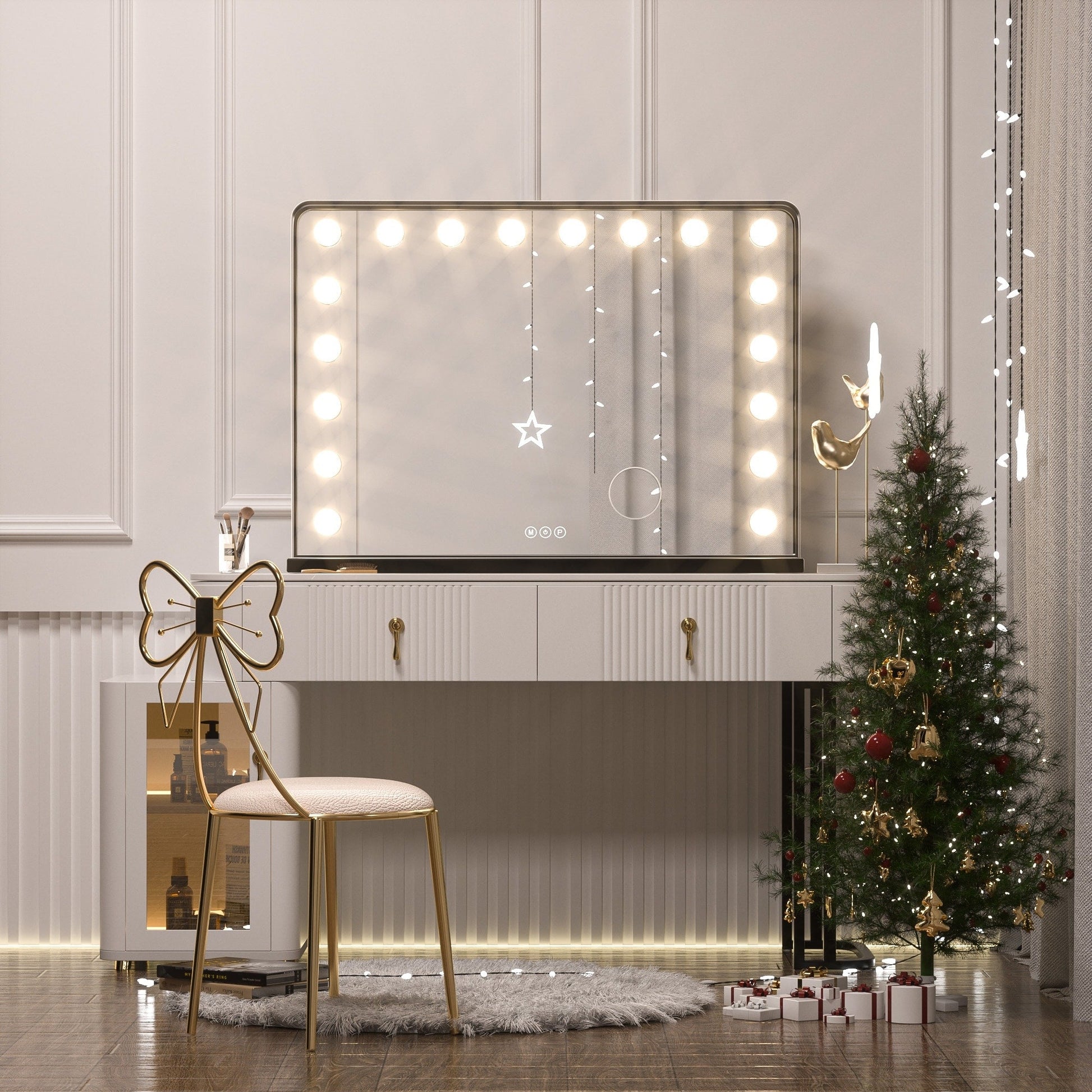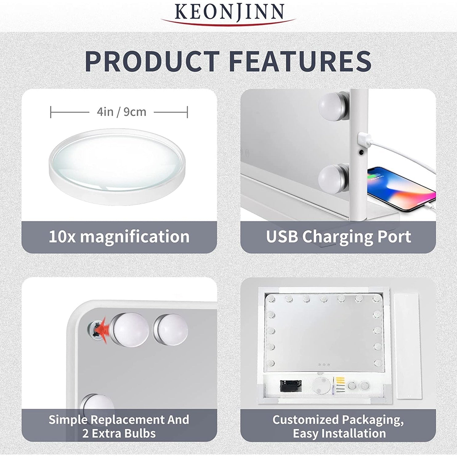 Bring the ultimate experience to your makeup or skincare event with Keonjinn's LED Makeup Hollywood Tabletop/Wall Mounted Lighted Makeup Mirror. Enjoy professional-grade lighting with 15/18 LED bulbs to ensure you never miss a spot or mess up your makeup again. It is perfect for makeup, touch-ups, skincare and other activities to make you more beautiful.