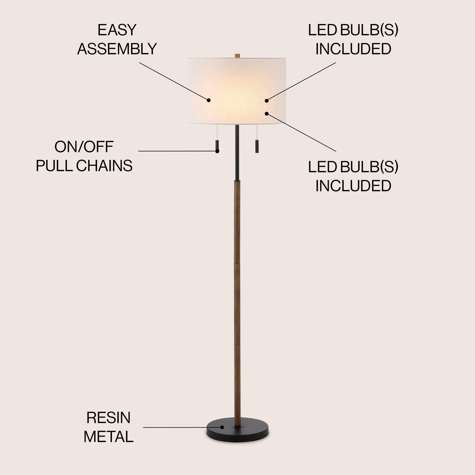 Koda 61 Rustic Farmhouse Iron Candlestick Pull Chains LED Floor Lamp, Brown Wood Finish/Black by JONATHAN Y