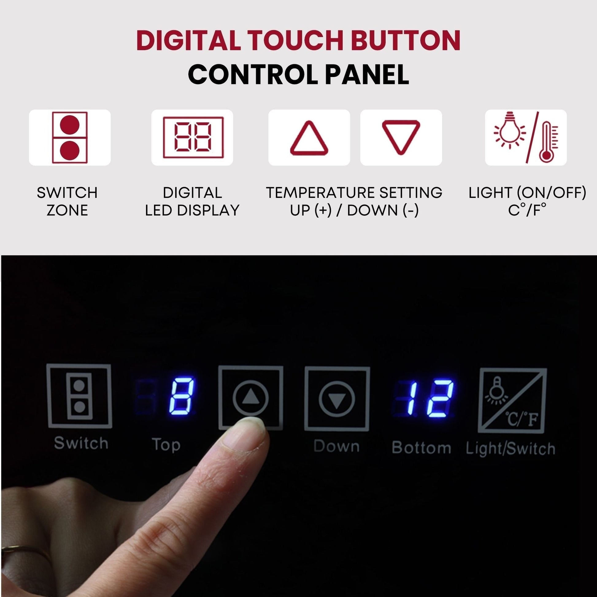- Temperature range of 54-66°F (12-18°C) in the upper zone and 46-66°F (8-18°C) in the lower zone
