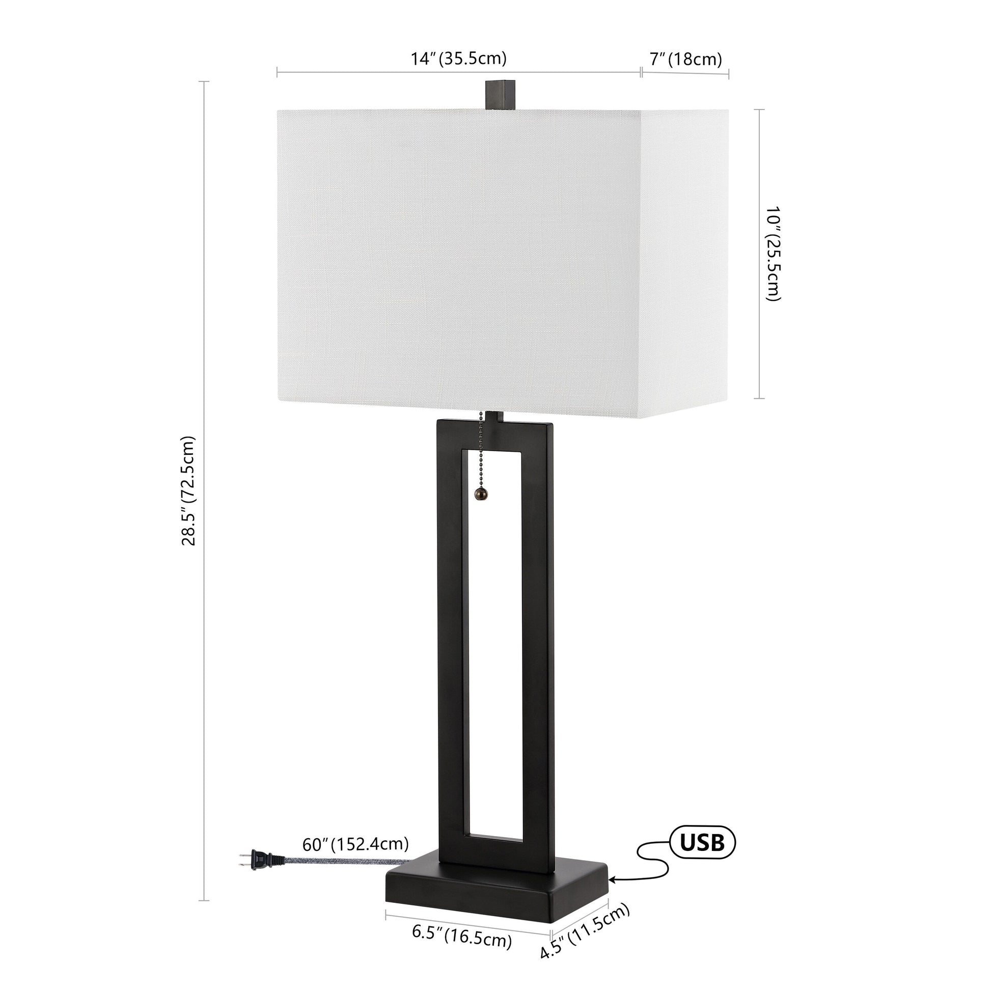 Lucie 28.5 Vintage Industrial Iron LED Table Lamp with Pull-Chain and USB Charging Port, (Set of 2) by JONATHAN Y