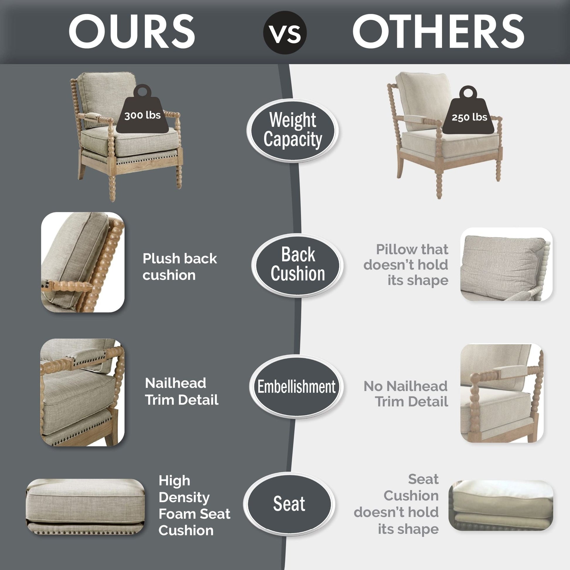 - Classic yet casual armchair with an open-back spindle design and turned wood detailing on the front legs for timeless appeal
