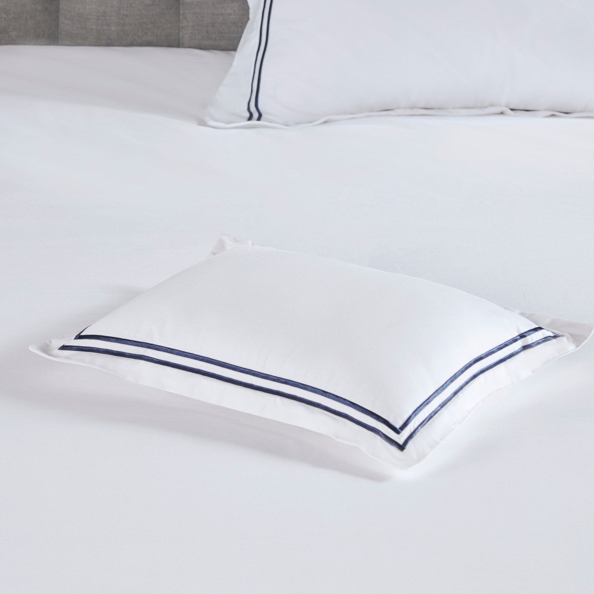 - Embroidered double-row striped design for a luxury hotel look