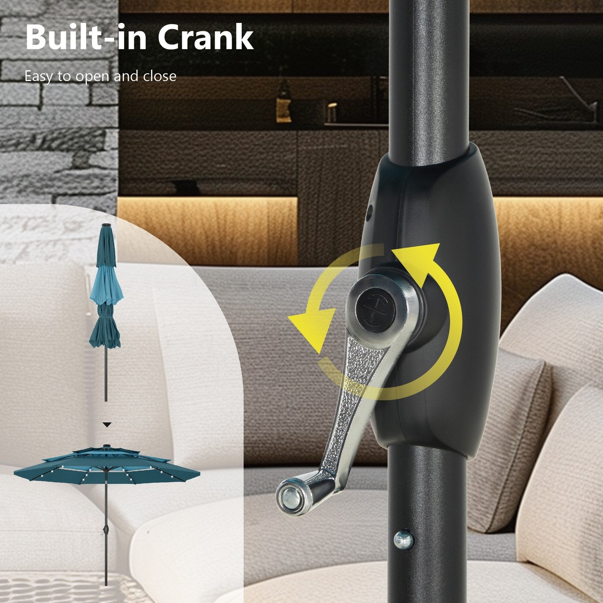 Easy Operation - Crank designed for easier opening and closing. With the auto-tilt mechanism, it's super easy for you to adjust the shading angle, providing you with a full protection from the sun or wind all the time