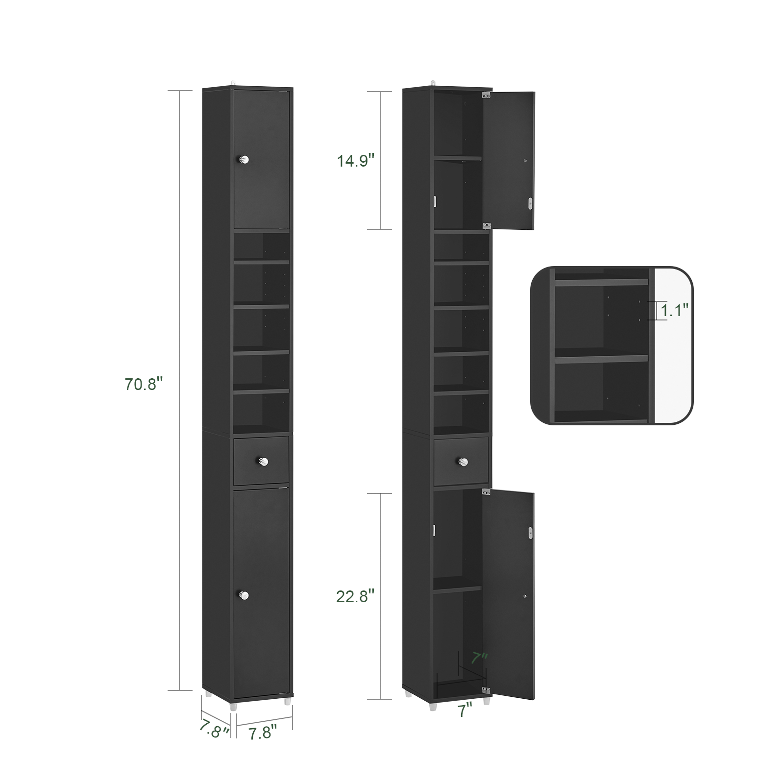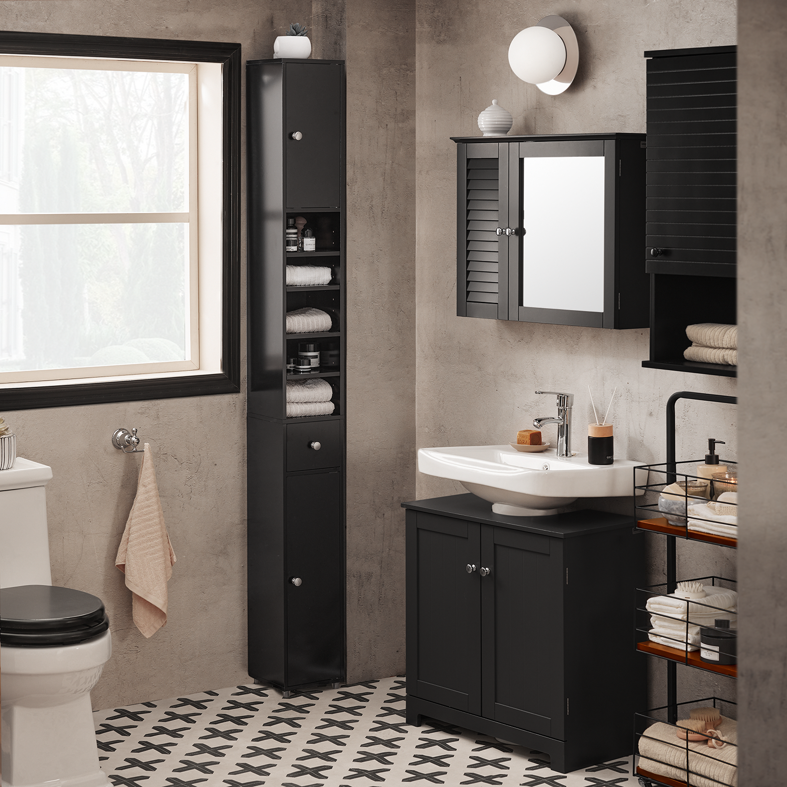 SoBuy BZR34-SCH, Meuble de salle de bain noir, étagère, armoire haute, 20 x 20 x 180 cm