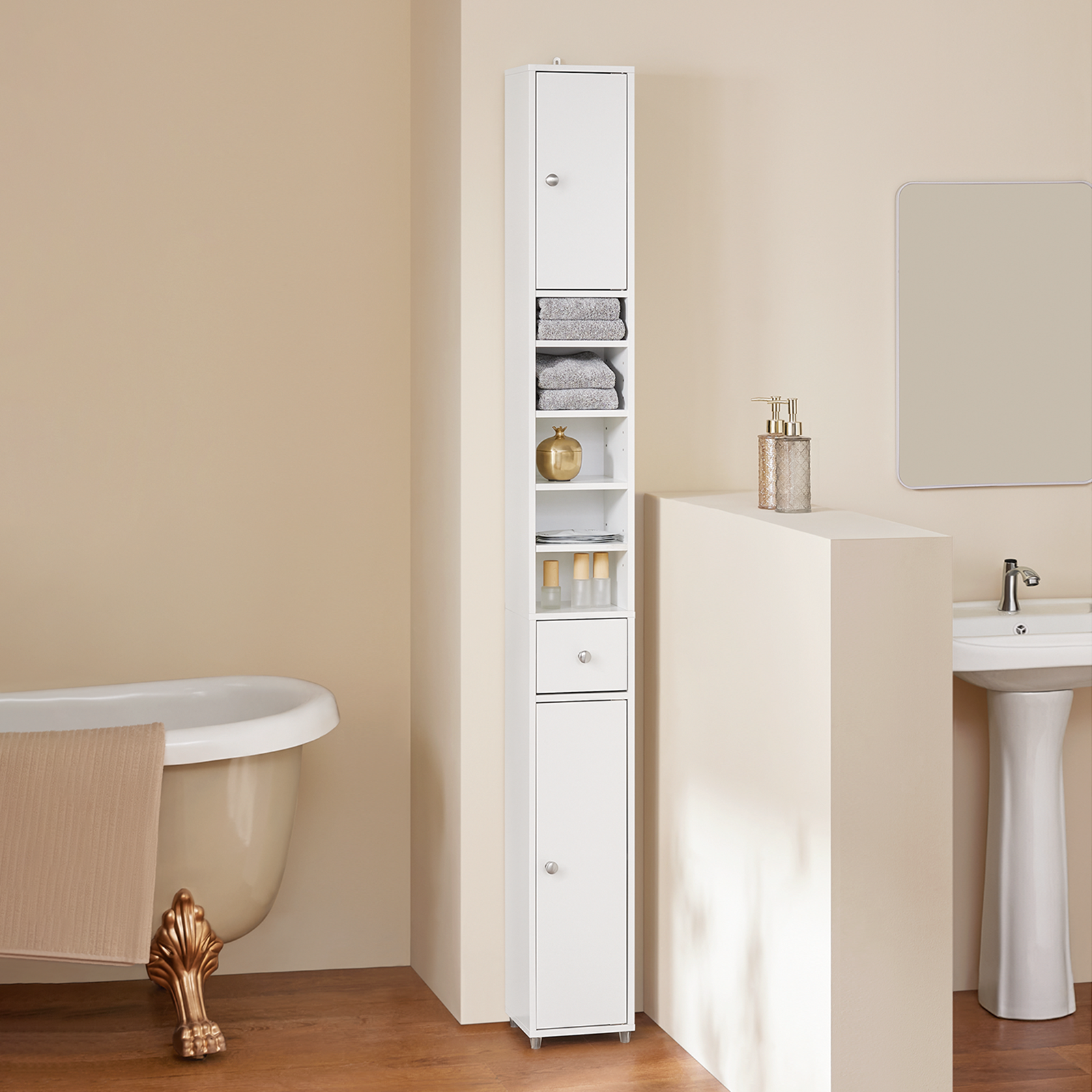 SoBuy BZR34-W, Meuble de salle de bain blanc, étagère de salle de bain, armoire haute de salle de bain, 20 x 20 x 180 cm