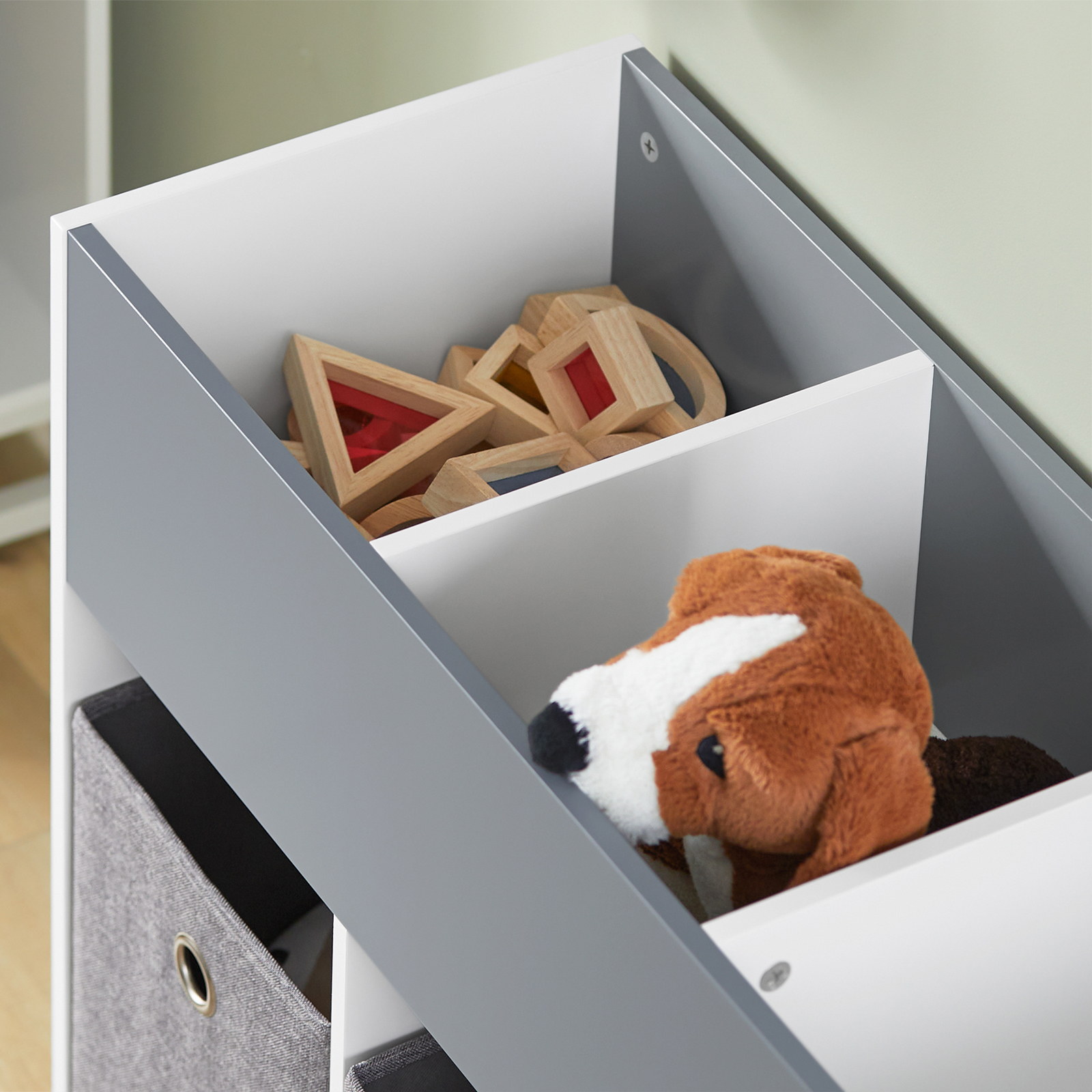 Ce meuble de rangement moderne pour enfants, blanc et gris, s'harmonisera parfaitement avec tous les styles de décoration. Un complément idéal pour une salle de jeux ou une chambre d'enfant.