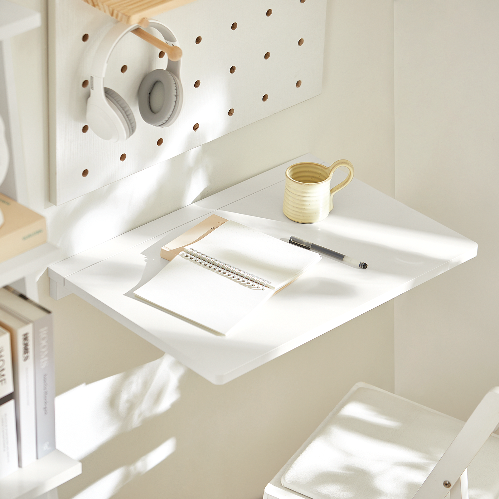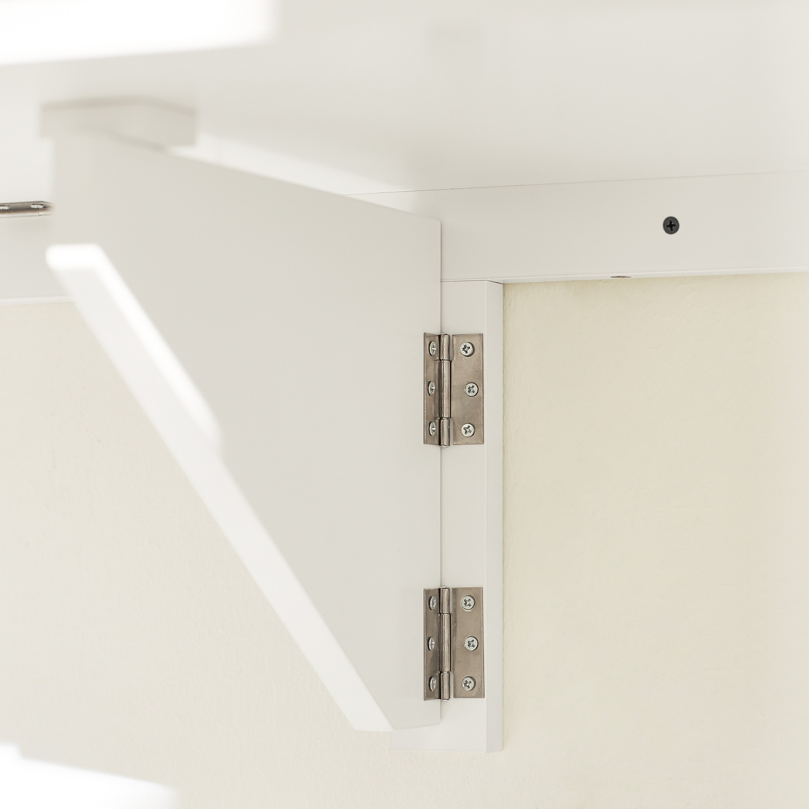Grâce à un support triangulaire, la table restera stable une fois fixée au mur.