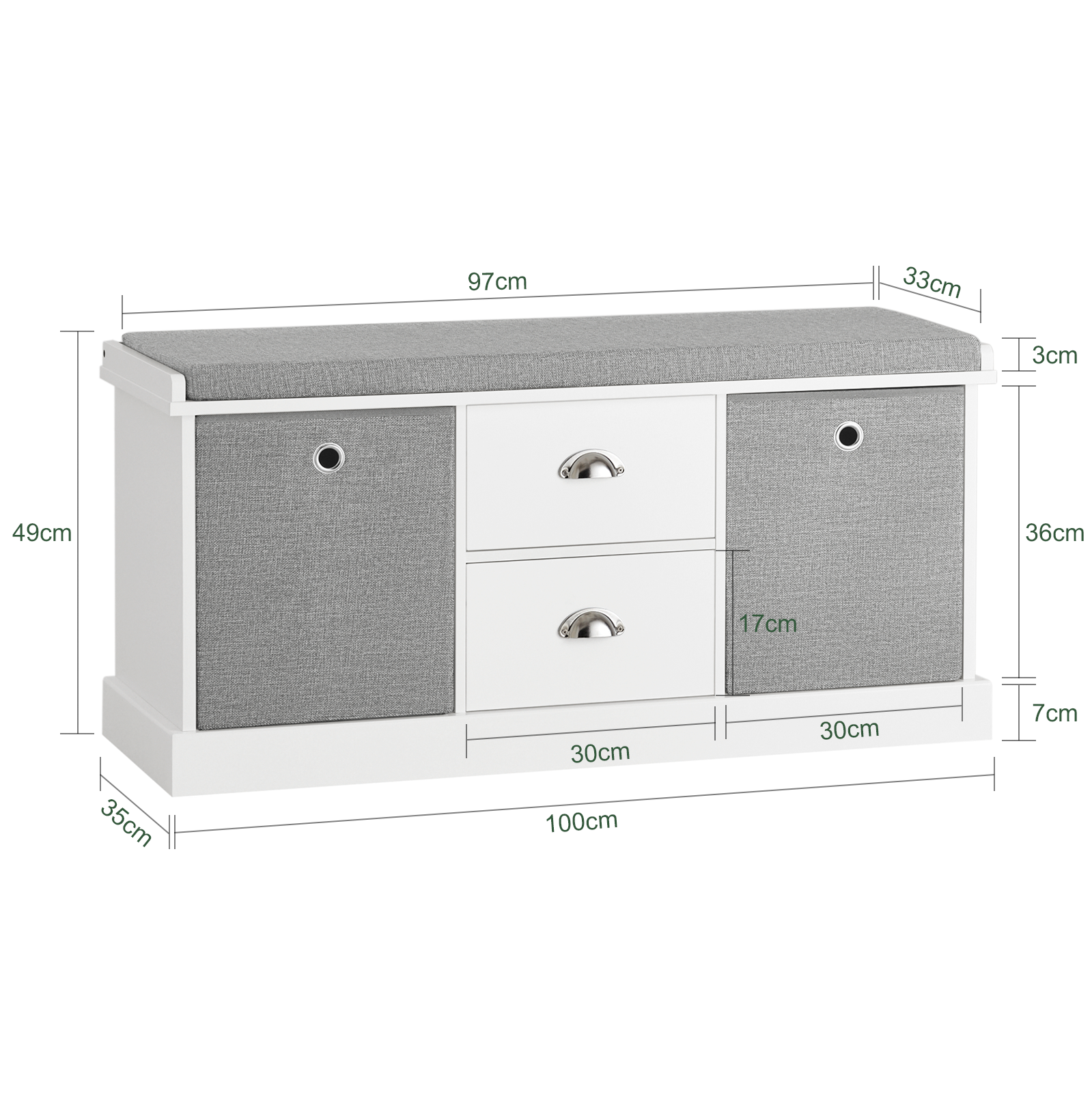 SoBuy FSR66-HG, banc de rangement pour entrée ou chambre avec 2 paniers et 2 tiroirs, meuble à chaussures et coussin d'assise.