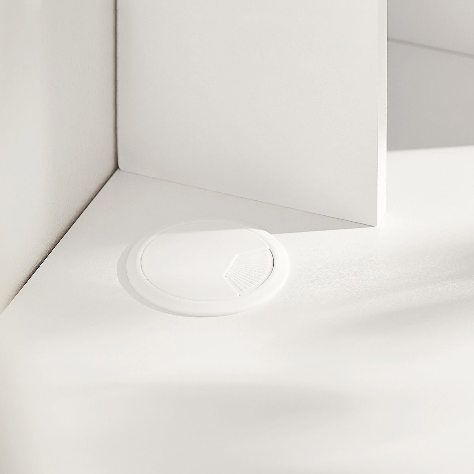 Des passe-câbles sont prévus à la fois sur la surface et dans le tiroir central pour garder votre bureau propre et organisé.