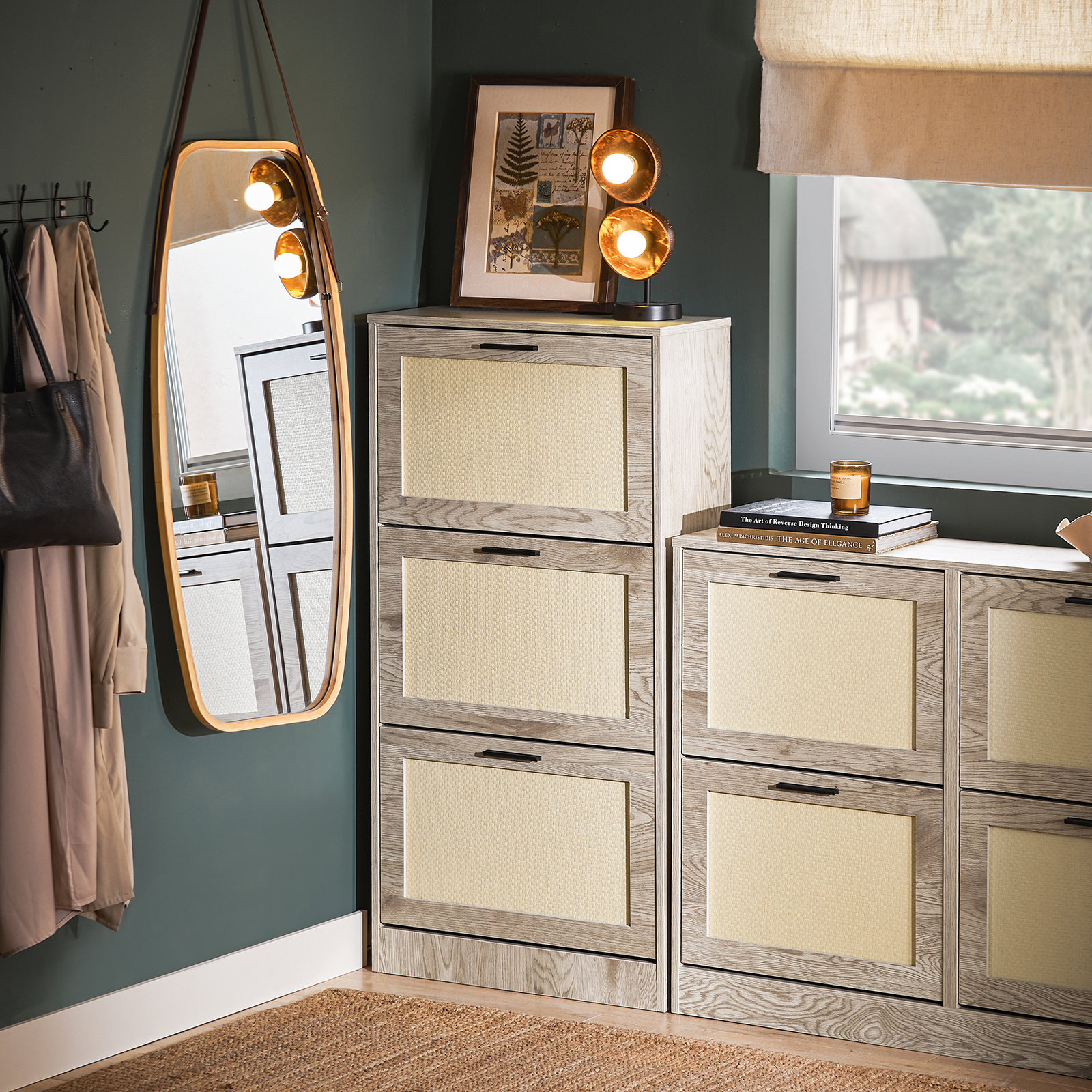 Avec une profondeur de 24 cm, ce meuble à chaussures est suffisamment étroit pour s'intégrer même dans un petit couloir.