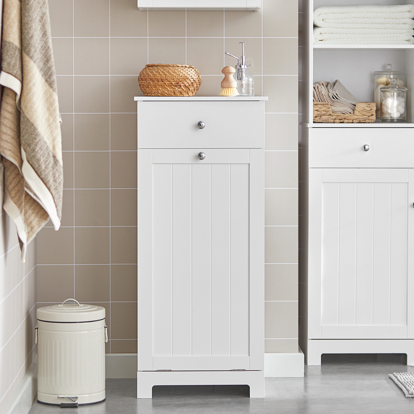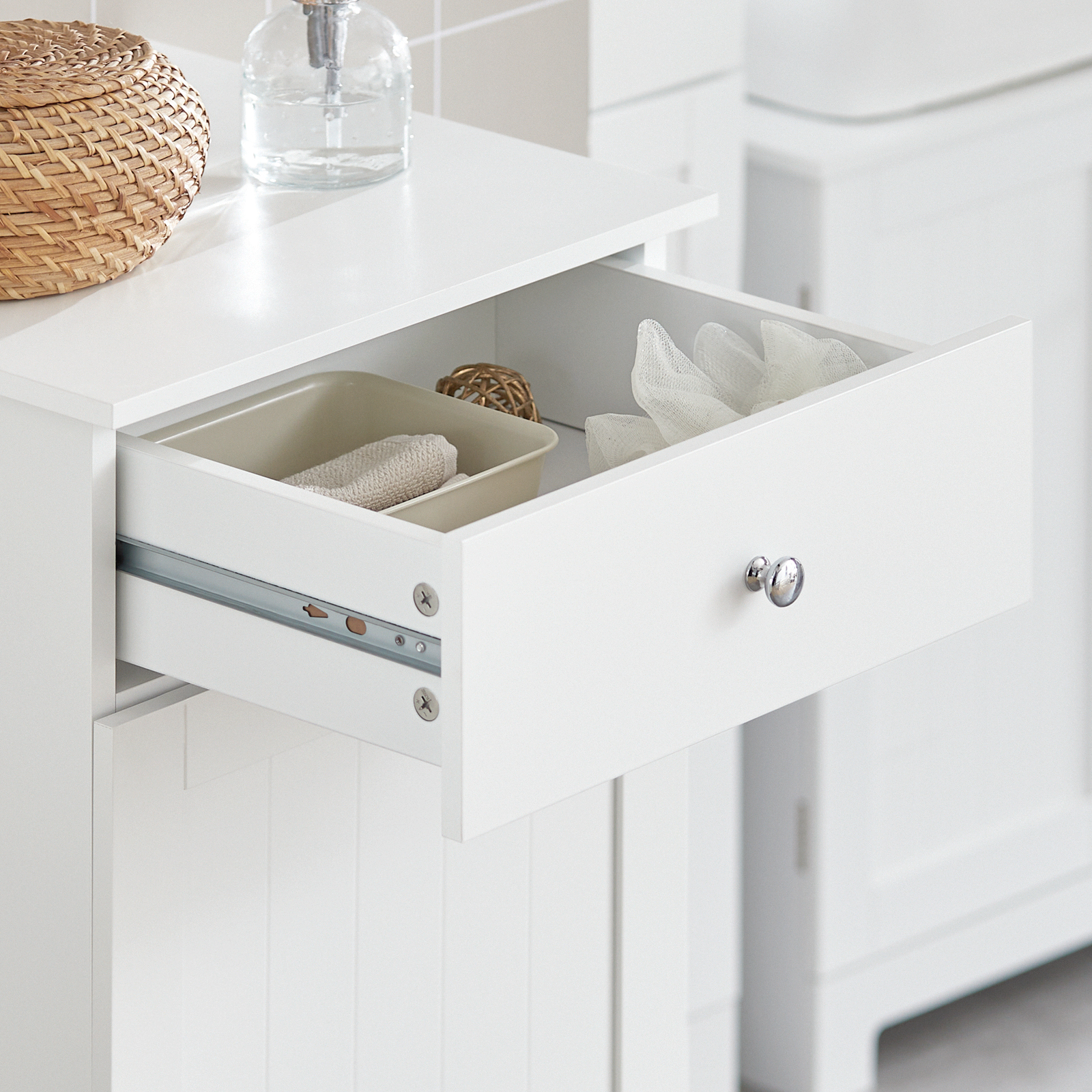 SoBuy Panier à linge blanc pour salle de bain, meuble de rangement avec tiroir, BZR21-W