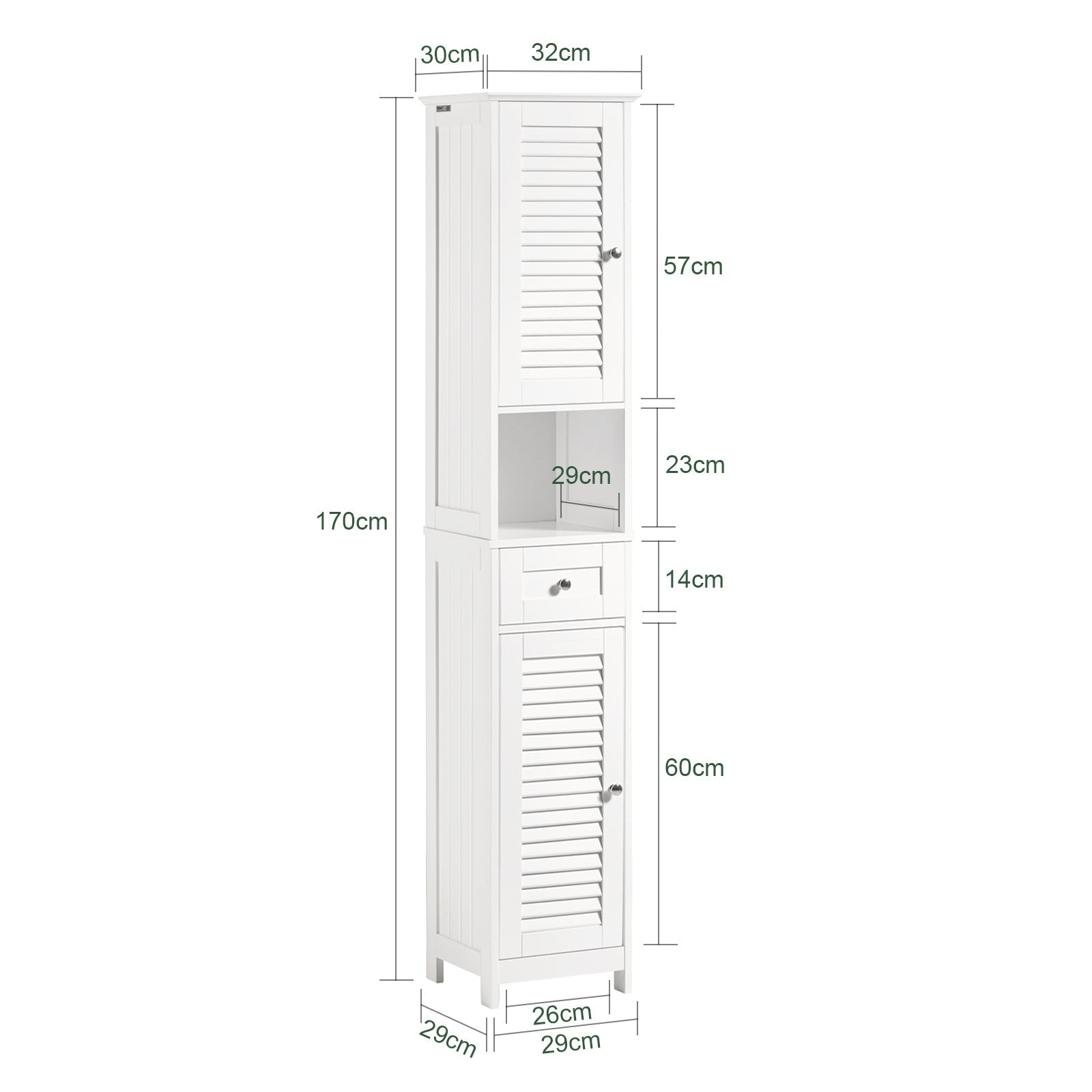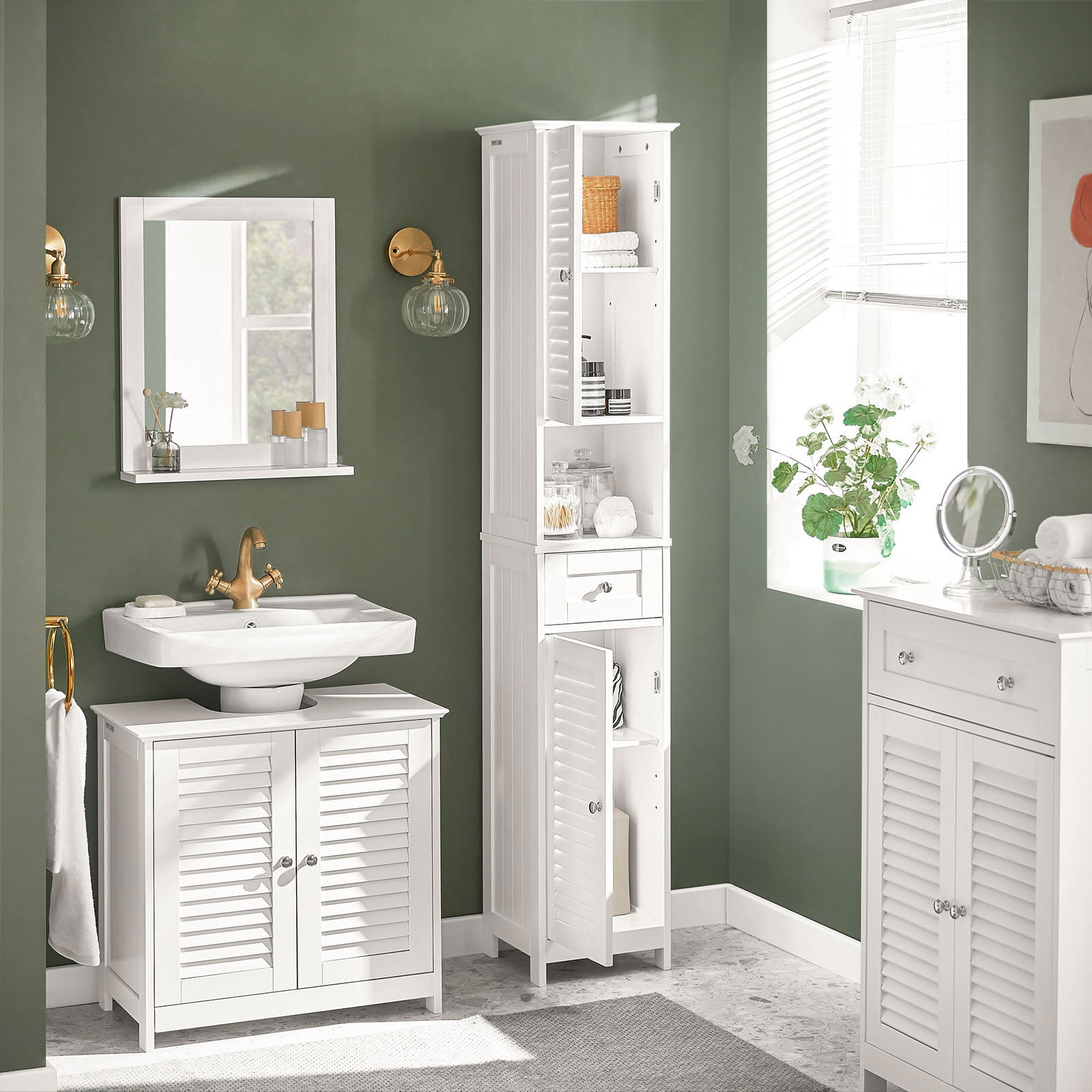 Il possède 2 portes à persiennes avec étagères intérieures réglables et 1 tiroir pour assurer un espace de rangement suffisant pour tous vos produits de salle de bain.